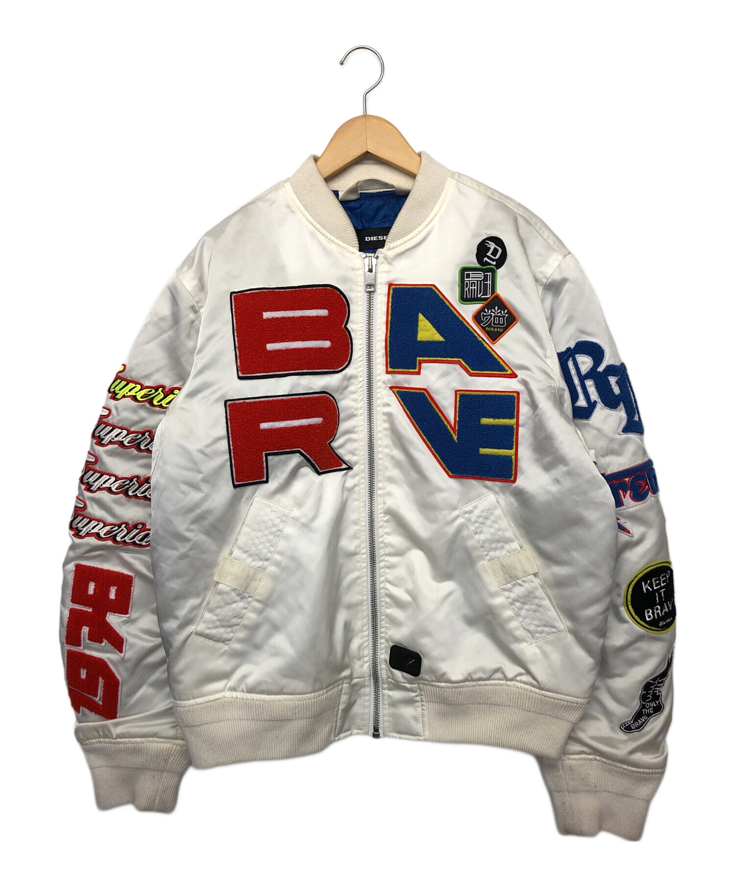 • DIESEL(ディーゼル)DIESEL (ディーゼル) MA-1ジャケット ホワイト サイズ:Lの古着・服飾アイテム 裏地シミヨゴレ有