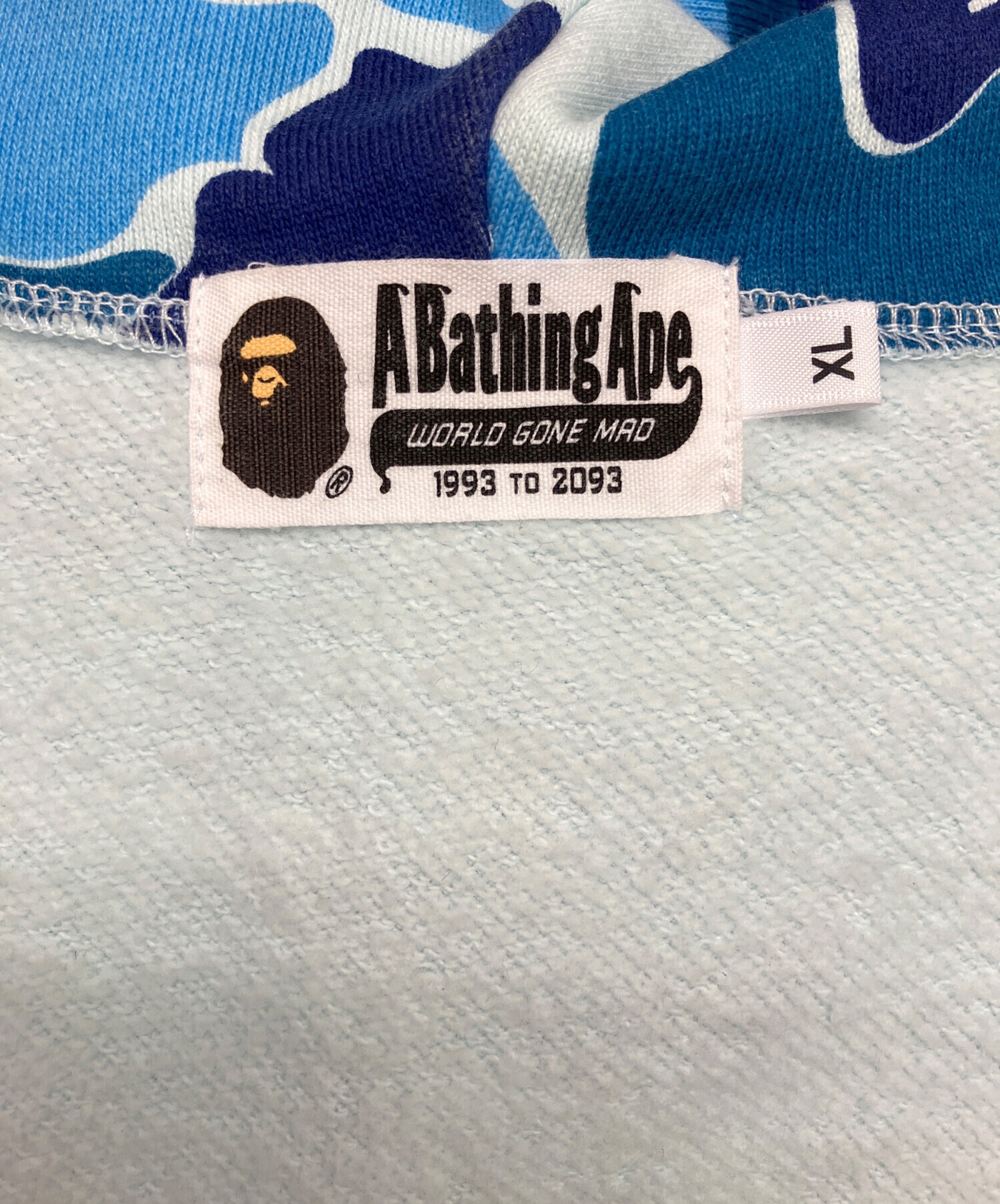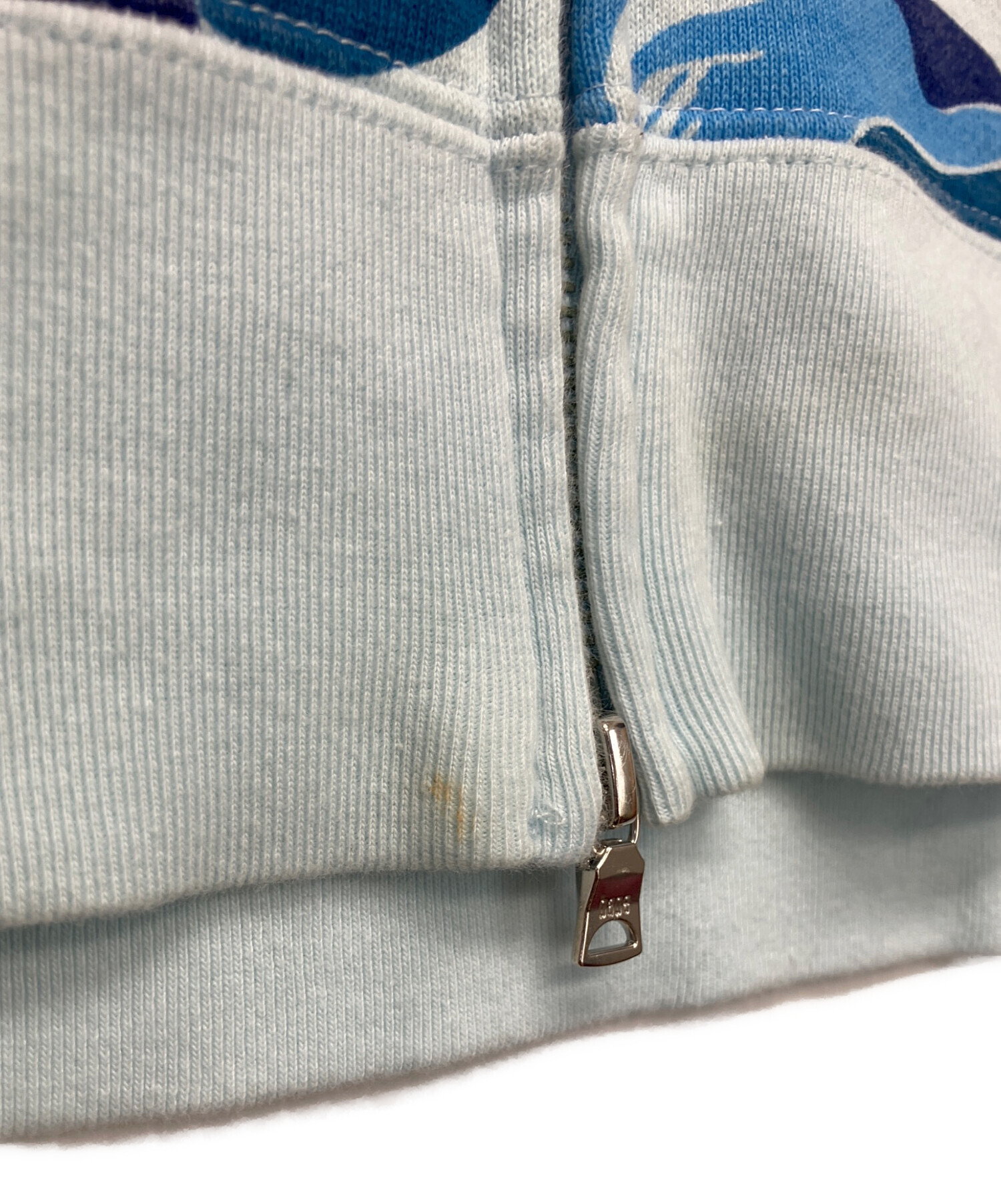 • A BATHING APE(ア ベイシング エイプ)A BATHING APE (ア ベイシング エイプ) ジップパーカー ブルー サイズ:XLの古着・服飾アイテム 袖裏ヨゴレ有
