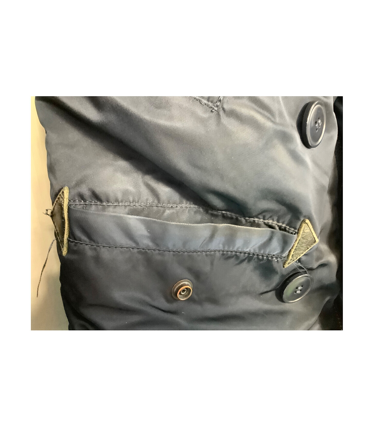 目立つシミや汚れ、におい等がある場合は商品画像や説明文にて極力表記させていただいておりますが、中古品という商品の特性上、全ての瑕疵や不備、洋服直し箇所を撮影・記載をすることは難しくなっております。また、ほとんどのアイテムは店頭と併売しておりますため、出品掲載時からコンディションが変動している場合もございます。あらかじめご了承くださいませ。