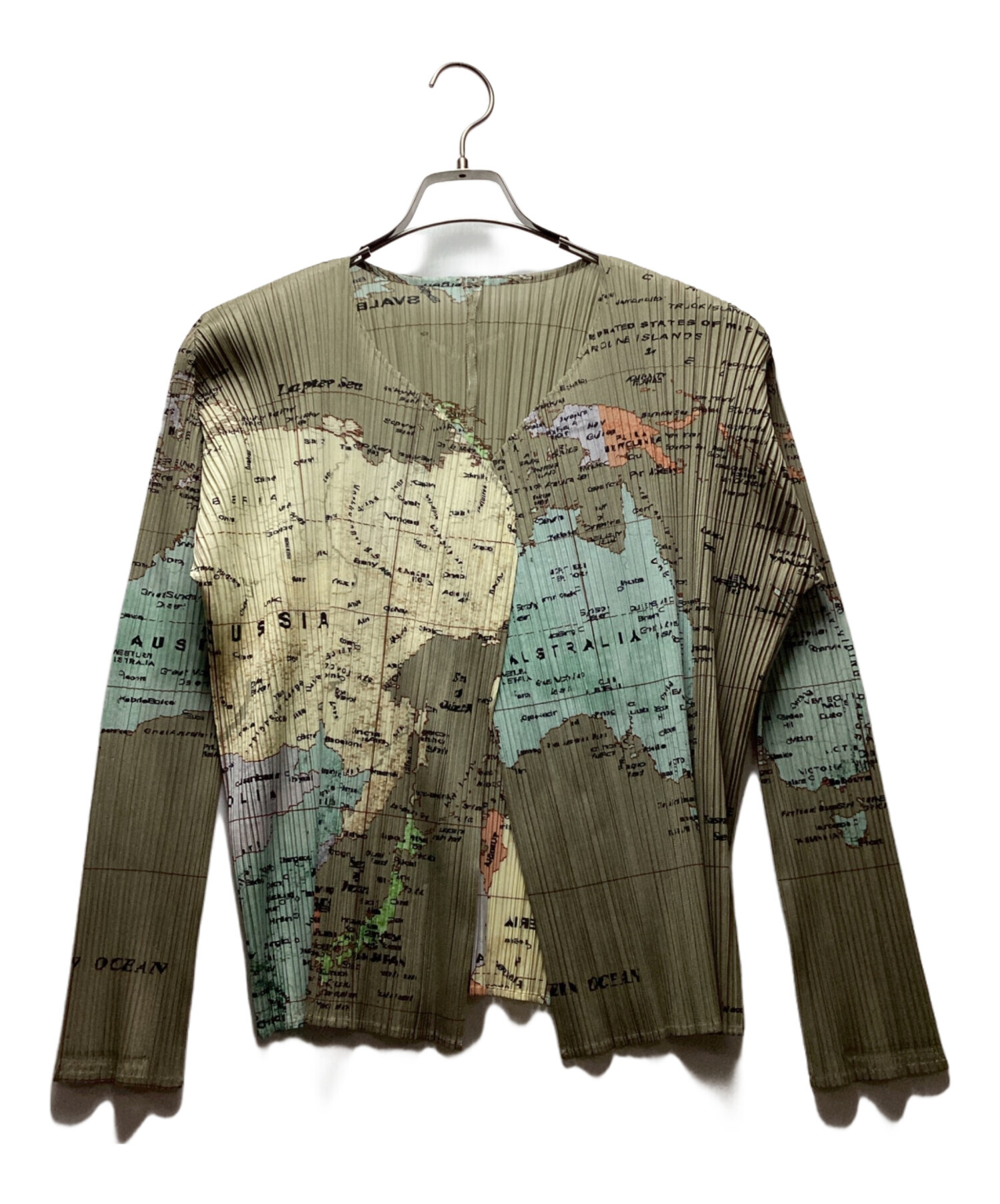 | スタッフコメント | 世界地図が描かれた個性的な薄手カーディガン。 |