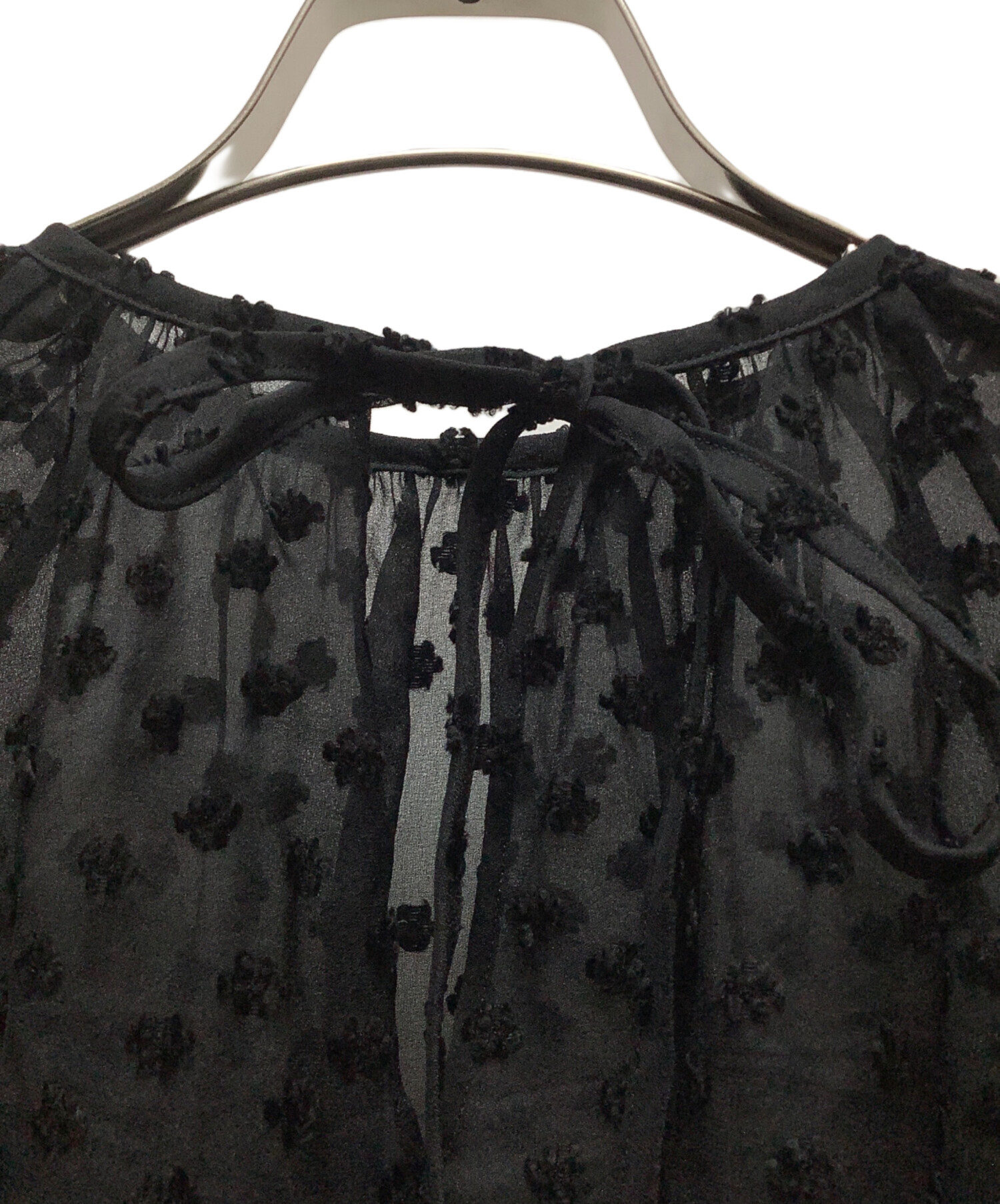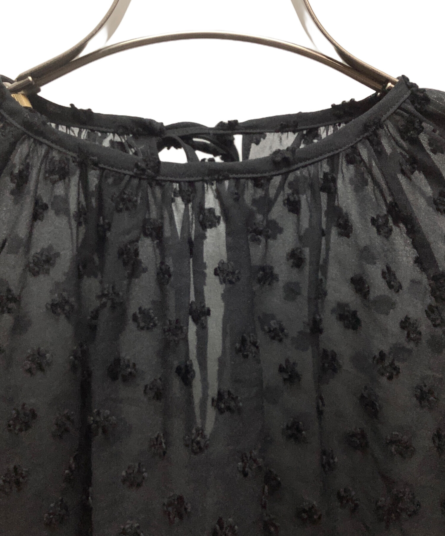 | スタッフコメント | 袖口がボリュームスリーブで透け感のある素材のブラウスです。 ドット調のフラワー生地が女性らしく印象的です。 |