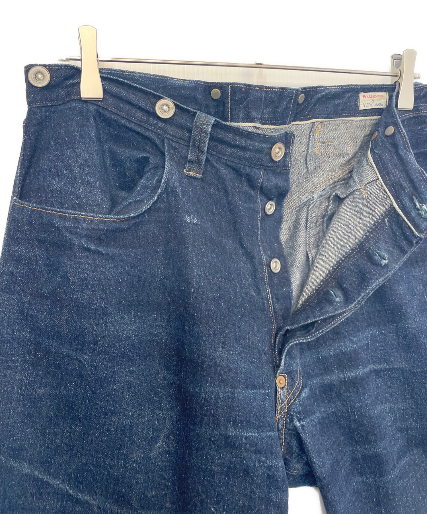 • WAREHOUSE(ウエアハウス)WAREHOUSE (ウエアハウス) Y.FUJIHARA (フジワラユタカ) デニムパンツ インディゴ サイズ:W32 81㎝の古着・服飾アイテム 右ポケット付近ダメージ有
