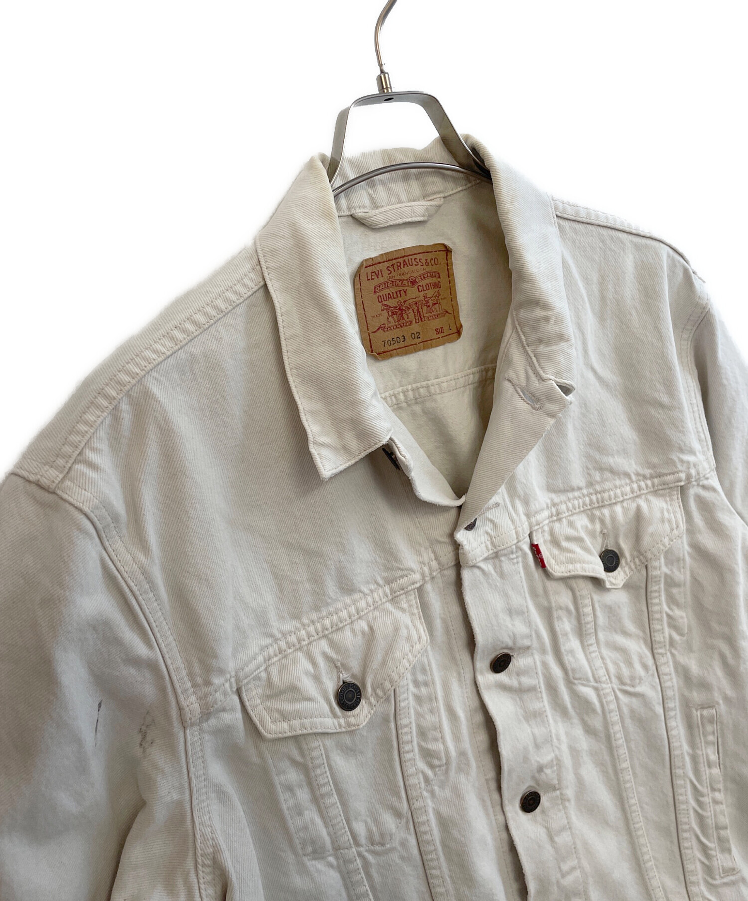 • LEVI'S(リーバイス)LEVI'S (リーバイス) デニムジャケット ホワイト サイズ:Lの古着・服飾アイテム 右袖ヨゴレ、襟元ヨゴレ有