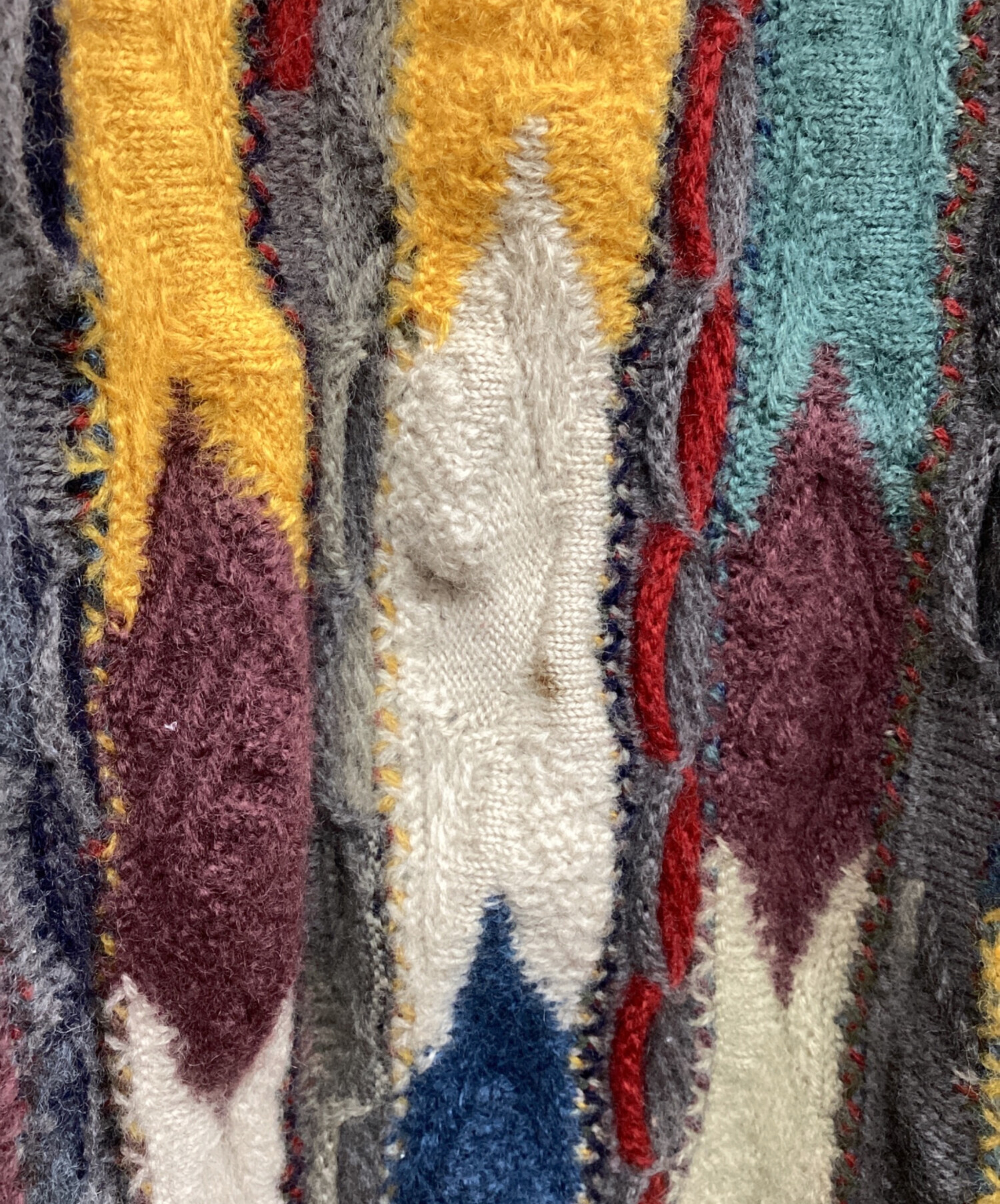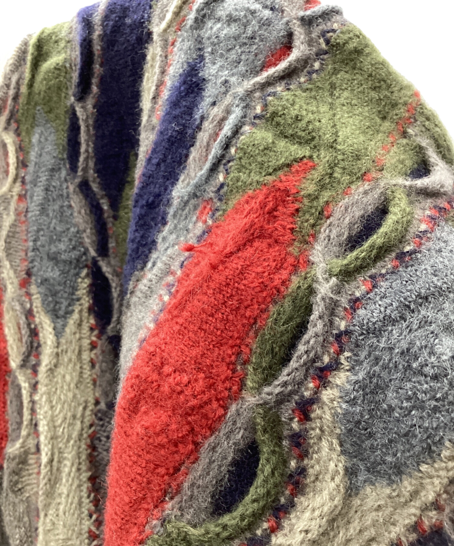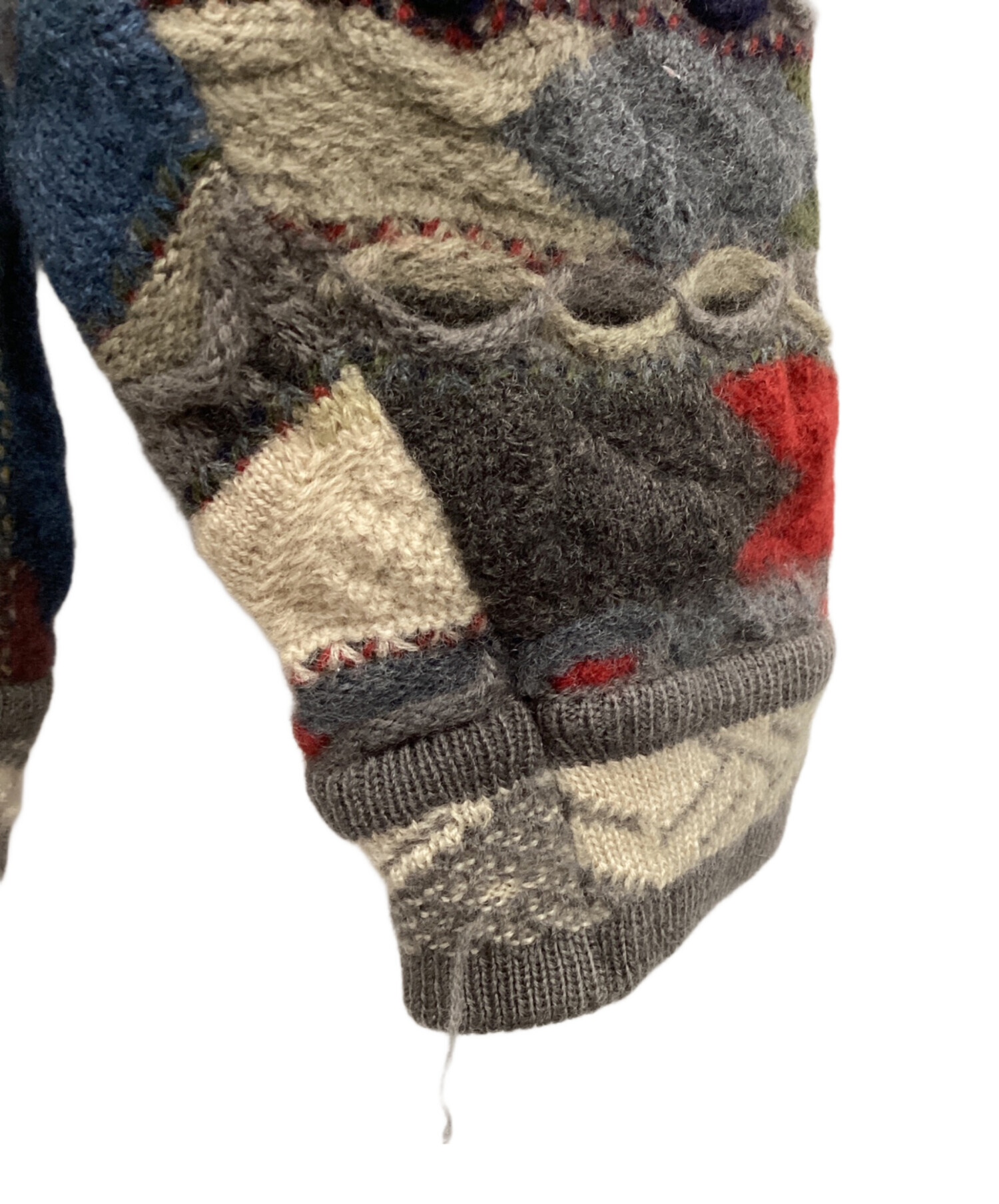 | 状態 | 胸下右寄りにヨゴレ有り、右胸イエロー部にホツレ有り、左肩下ネイビー部にホツレ有り、背面左下グレー部にホツレ有り、背面左肩下レッド部ホツレ有り、背面右脇下グリーン部にホツレ有り、右袖グレー部にホツレ有り(画像参照) その他、数カ所ホツレ箇所有り こちらの商品は中古品の為、使用に伴います細かなキズ、汚れがございます。店頭にて展示販売を行っている為、記載に無い細かなキズ、汚れが見受けられる場合がございます。 |