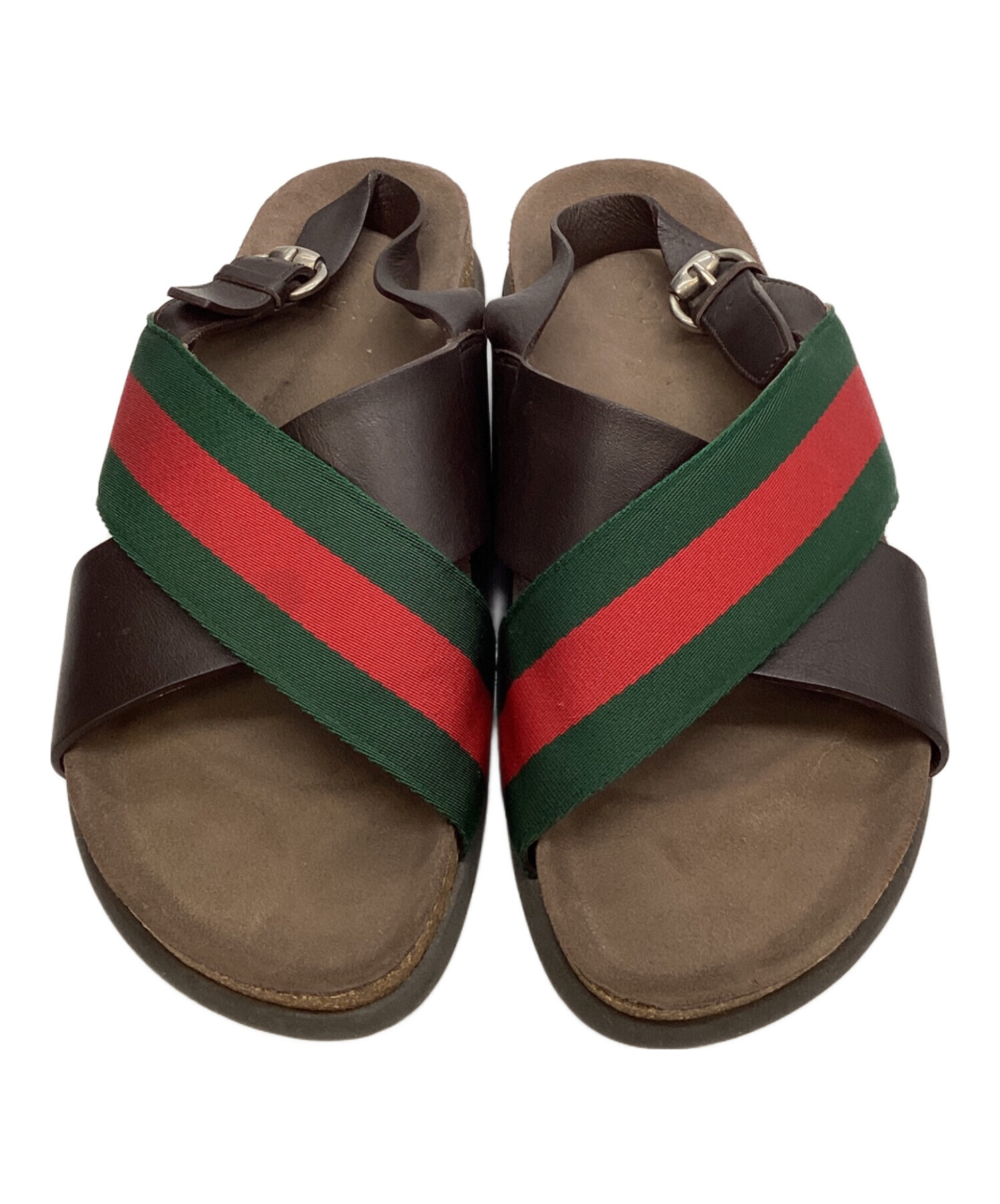 | スタッフコメント | GUCCI(グッチ)のクロスベルトサンダル。シェリーラインと言われる、緑と赤の三本線のデザインが施されており、シンプルになりがちな足下にアクセントを足せるアイテムです。 |