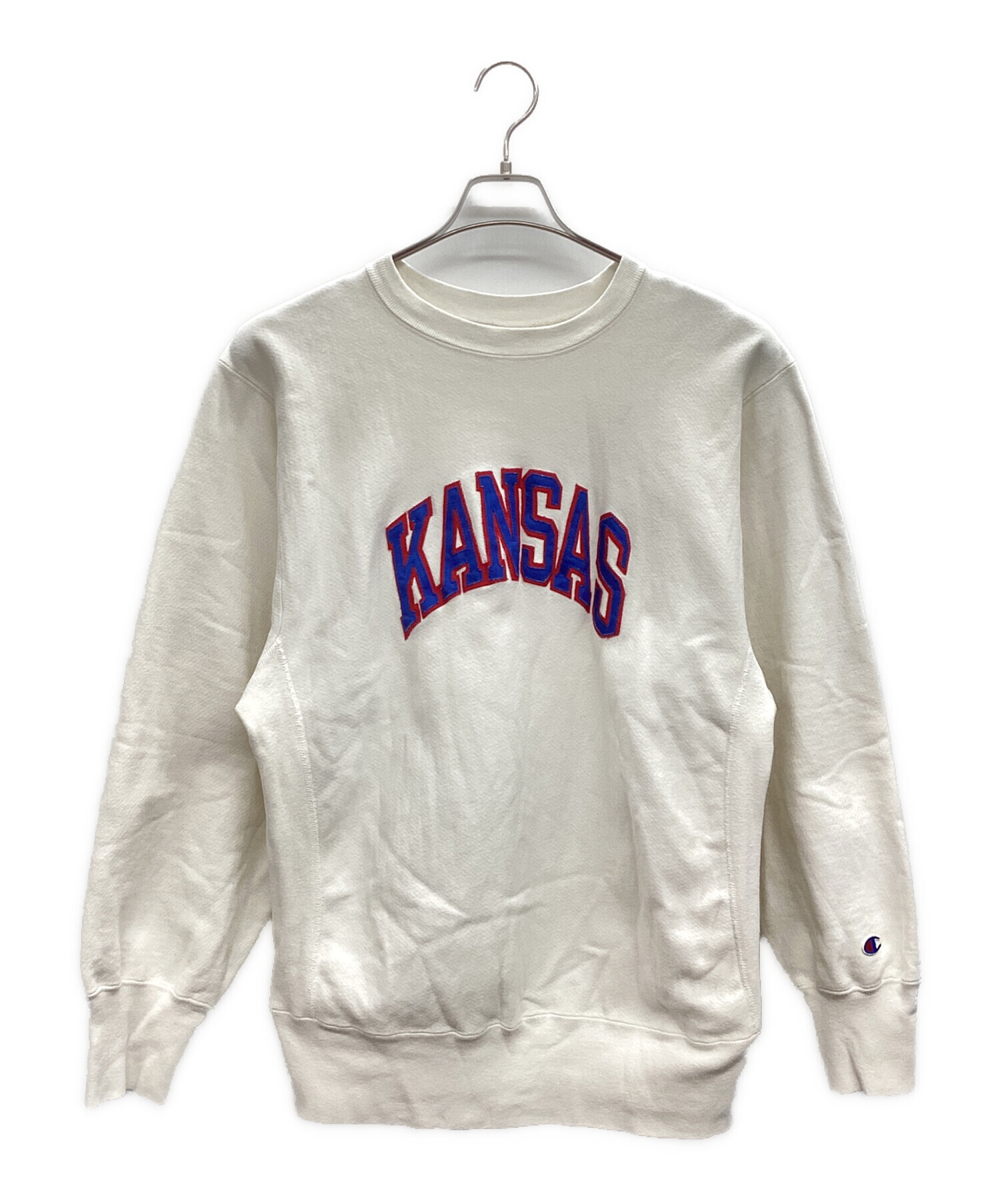 • Champion REVERSE WEAVE(チャンピオン リバース ウィーブ)Champion REVERSE WEAVE (チャンピオン リバース ウィーブ) The University of Kansas ホワイト サイズ:XLの古着・服飾アイテム 右腕背面にシミ有り