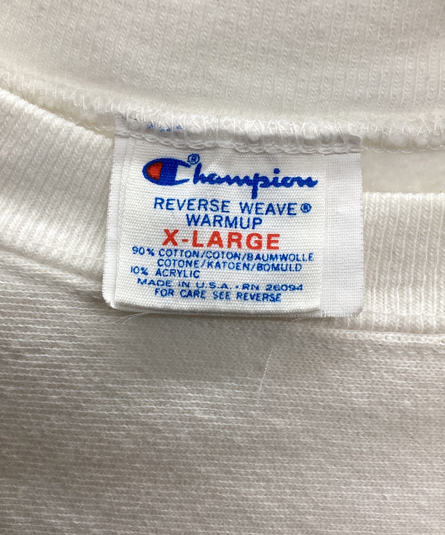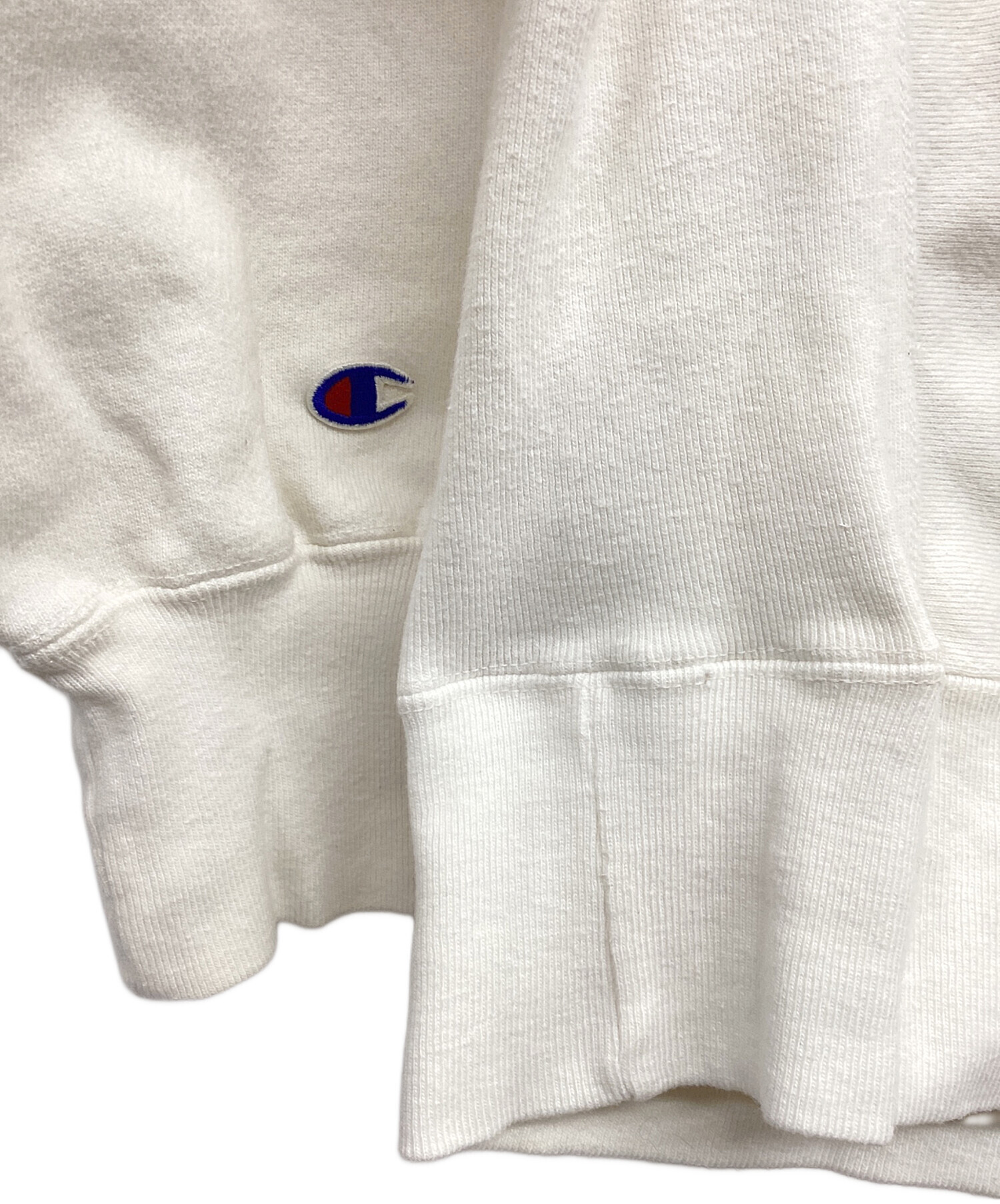 • Champion REVERSE WEAVE(チャンピオン リバース ウィーブ)Champion REVERSE WEAVE (チャンピオン リバース ウィーブ) The University of Kansas ホワイト サイズ:XLの古着・服飾アイテム 裾リブ縫製部に数カ所小さな穴有り