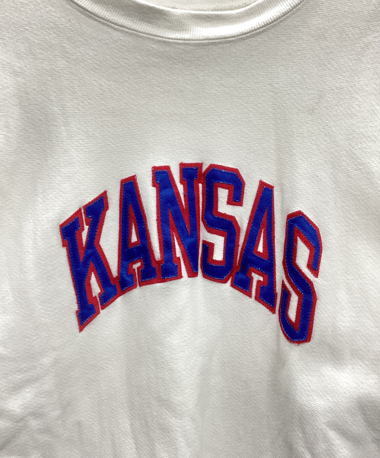 • Champion REVERSE WEAVE(チャンピオン リバース ウィーブ)Champion REVERSE WEAVE (チャンピオン リバース ウィーブ) The University of Kansas ホワイト サイズ:XLの古着・服飾アイテム 前面中央左辺りに薄いシミ有り
