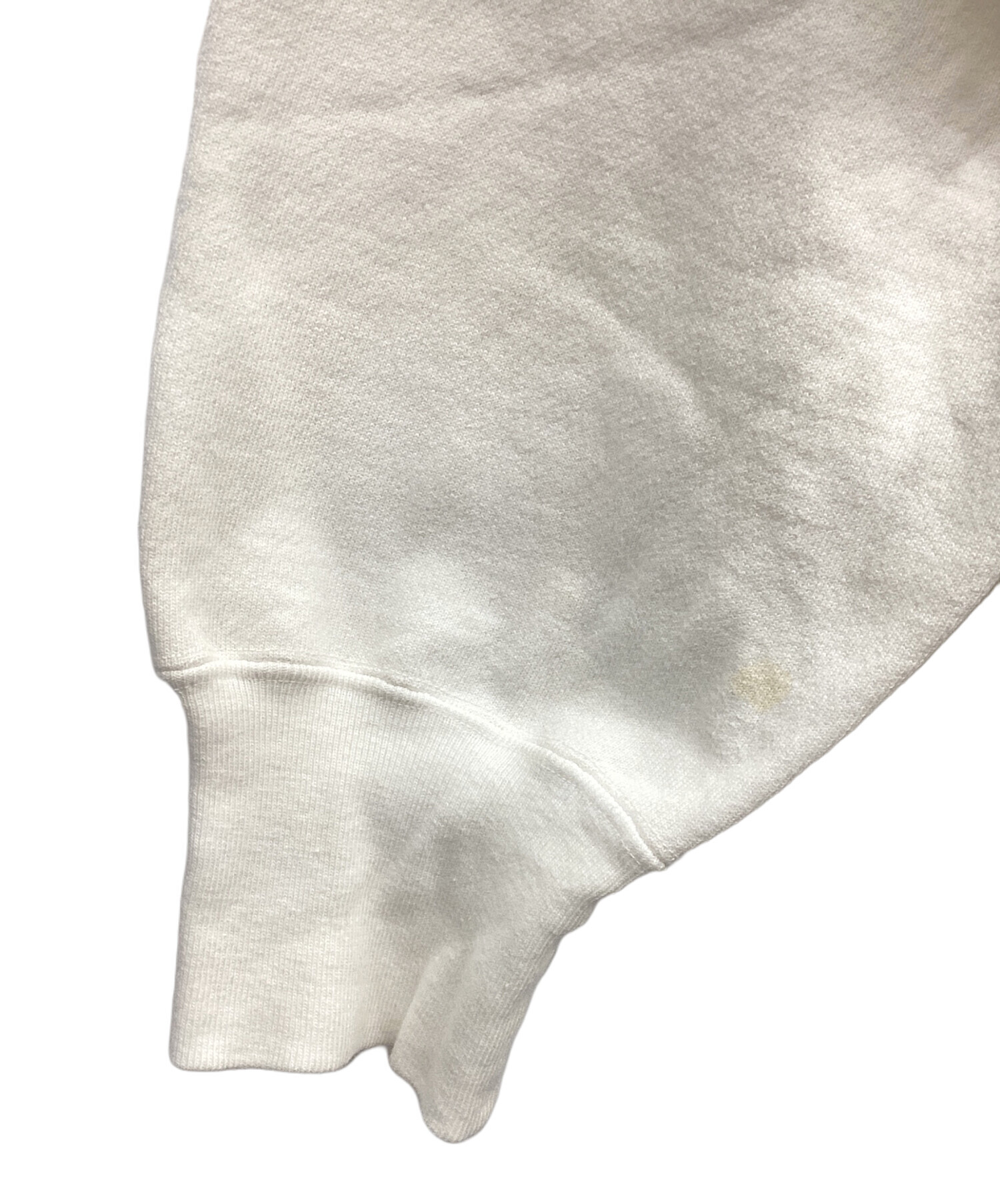 状態 左胸上部に薄いヨゴレ有り、右袖にシミ有り、背面襟下部に薄いシミ有り、右腕背面にシミ有り、右脇下にシミ有り、裾リブ縫製部に数カ所小さな穴有り、前面中央左辺りに薄いシミ有り(画像参照)