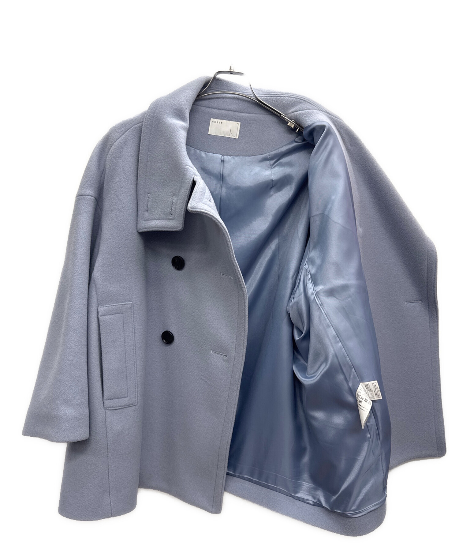 • Noble(ノーブル)Noble (ノーブル) スタンドカラーオーバーコート ブルー サイズ:不明の古着・服飾アイテム 内側全体的にシミ有