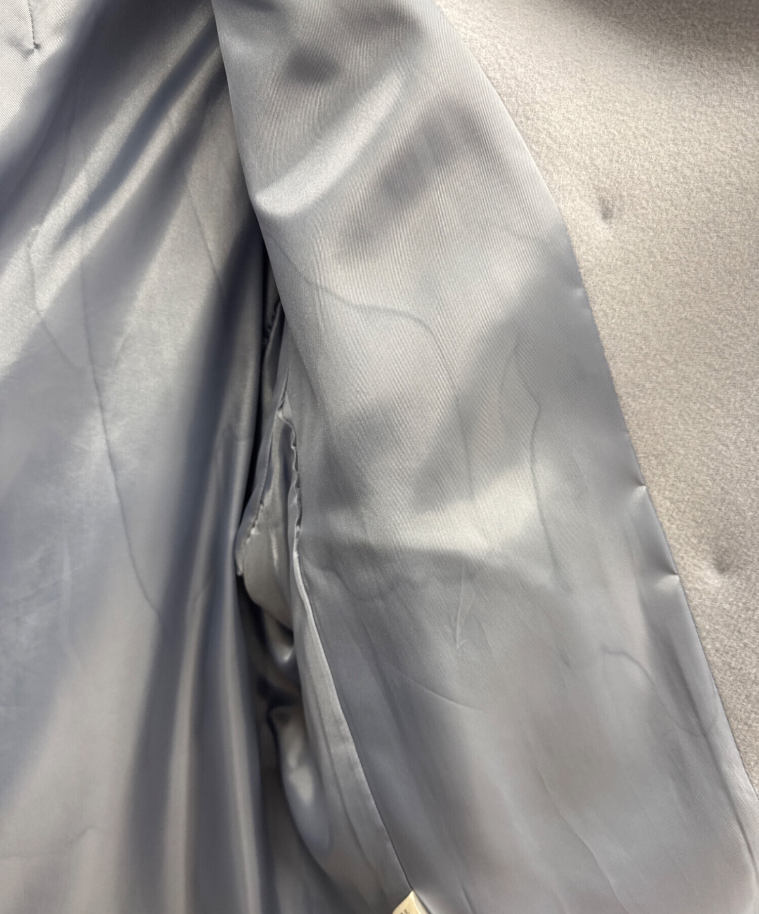 • Noble(ノーブル)Noble (ノーブル) スタンドカラーオーバーコート ブルー サイズ:不明の古着・服飾アイテム 両袖口内側にヨゴレ有