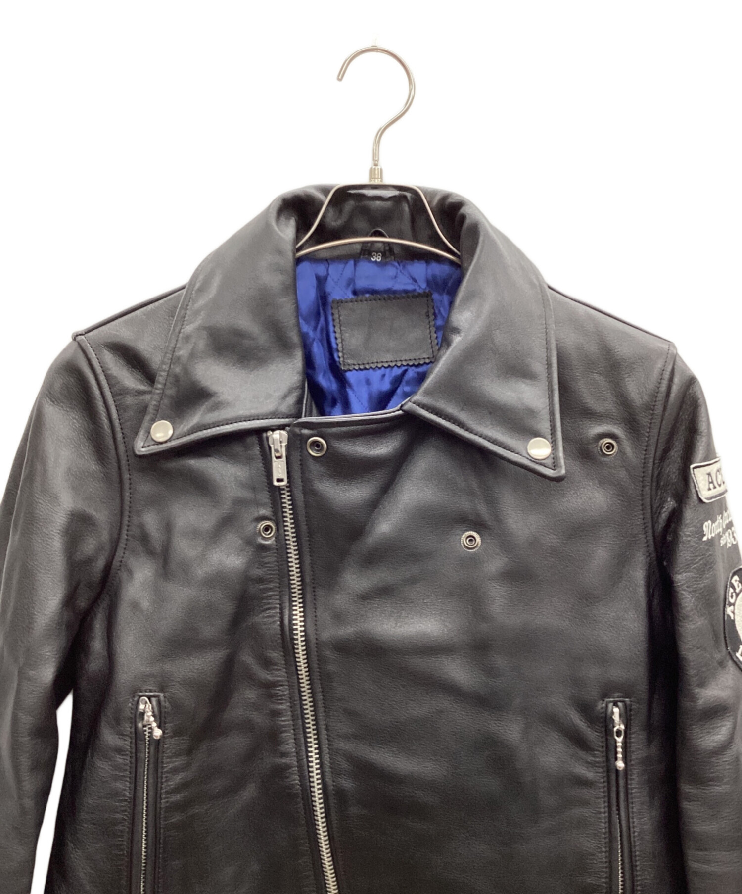 • ACE CAFE LONDON(エースカフェロンドン)ACE CAFE LONDON (エースカフェロンドン) ライダースジャケット ブラック サイズ:38の古着・服飾アイテム 右内部に円形型跡有り