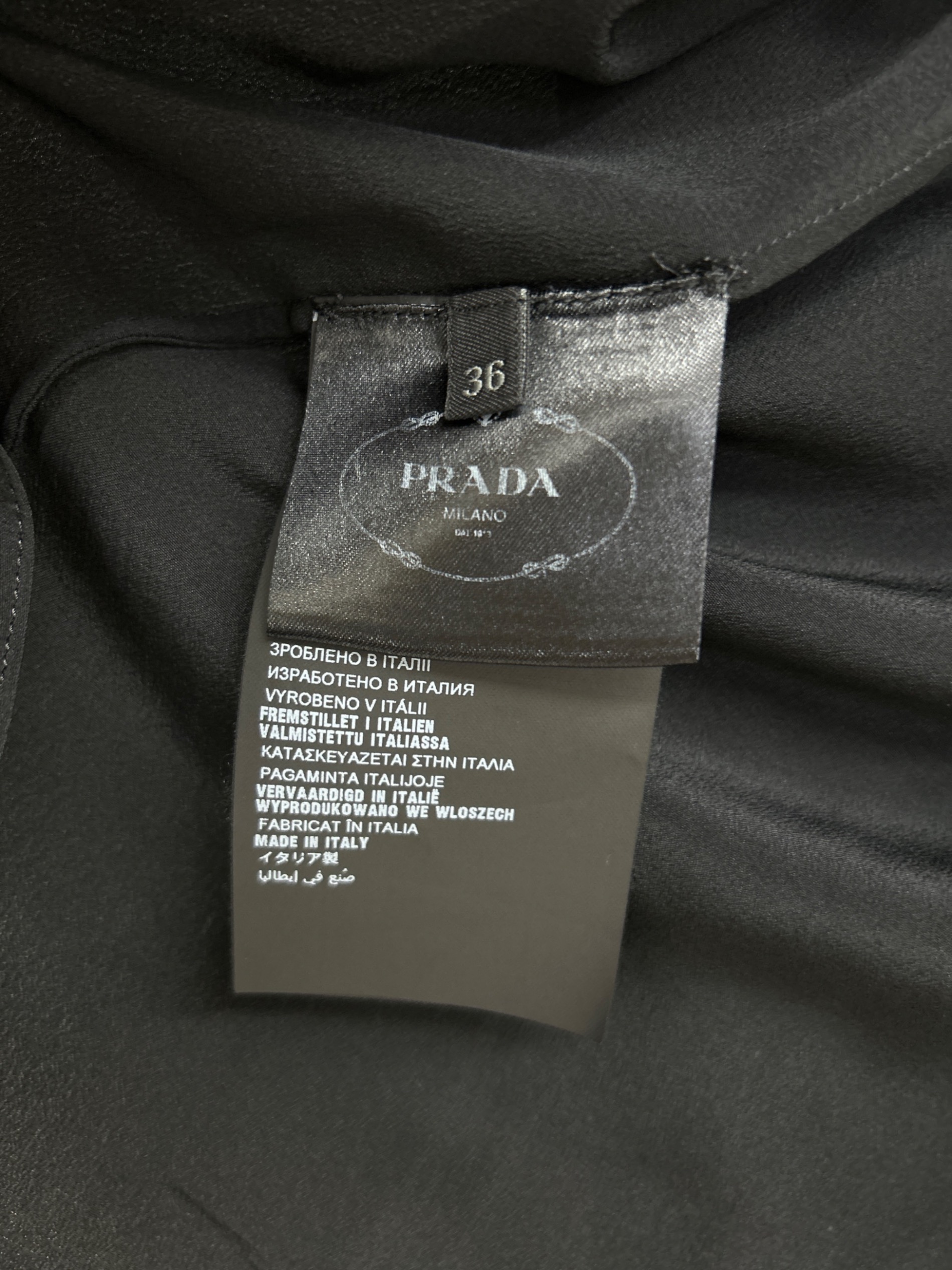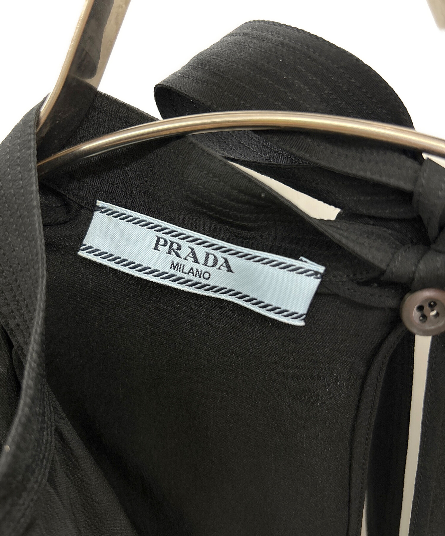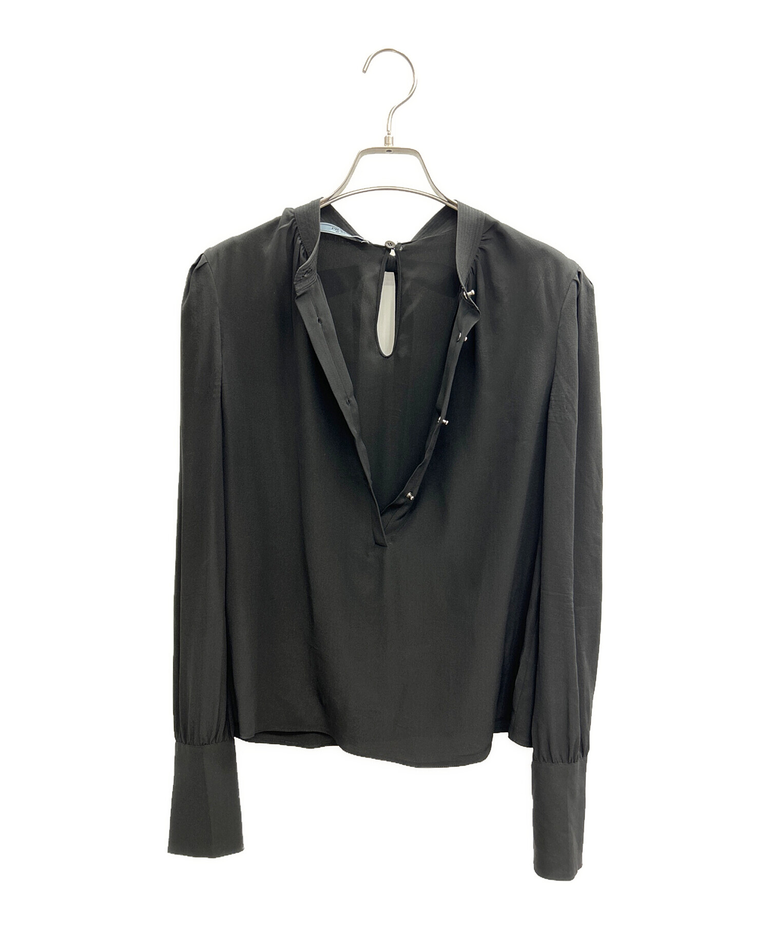 • PRADA(プラダ)PRADA (プラダ) 長袖ブラウス ブラック サイズ:36の古着・服飾アイテム バックボタン横の生地薄れ有