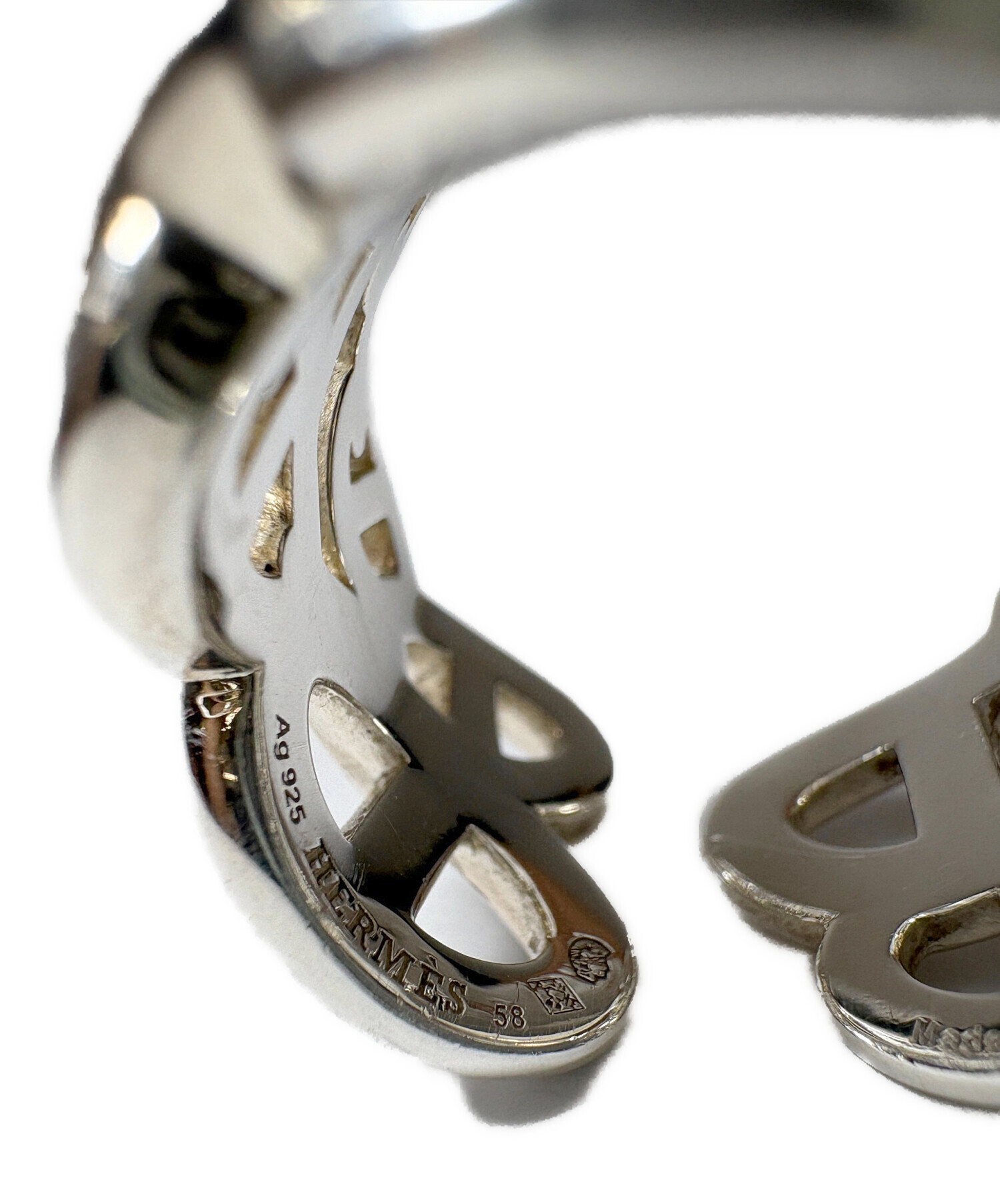 | スタッフコメント | HERMESのアイコニックなシェーヌ・ダンクルのデザイン性の高いリングです。煌びやかなデザインで手元を華やかに演出してくれます。 |