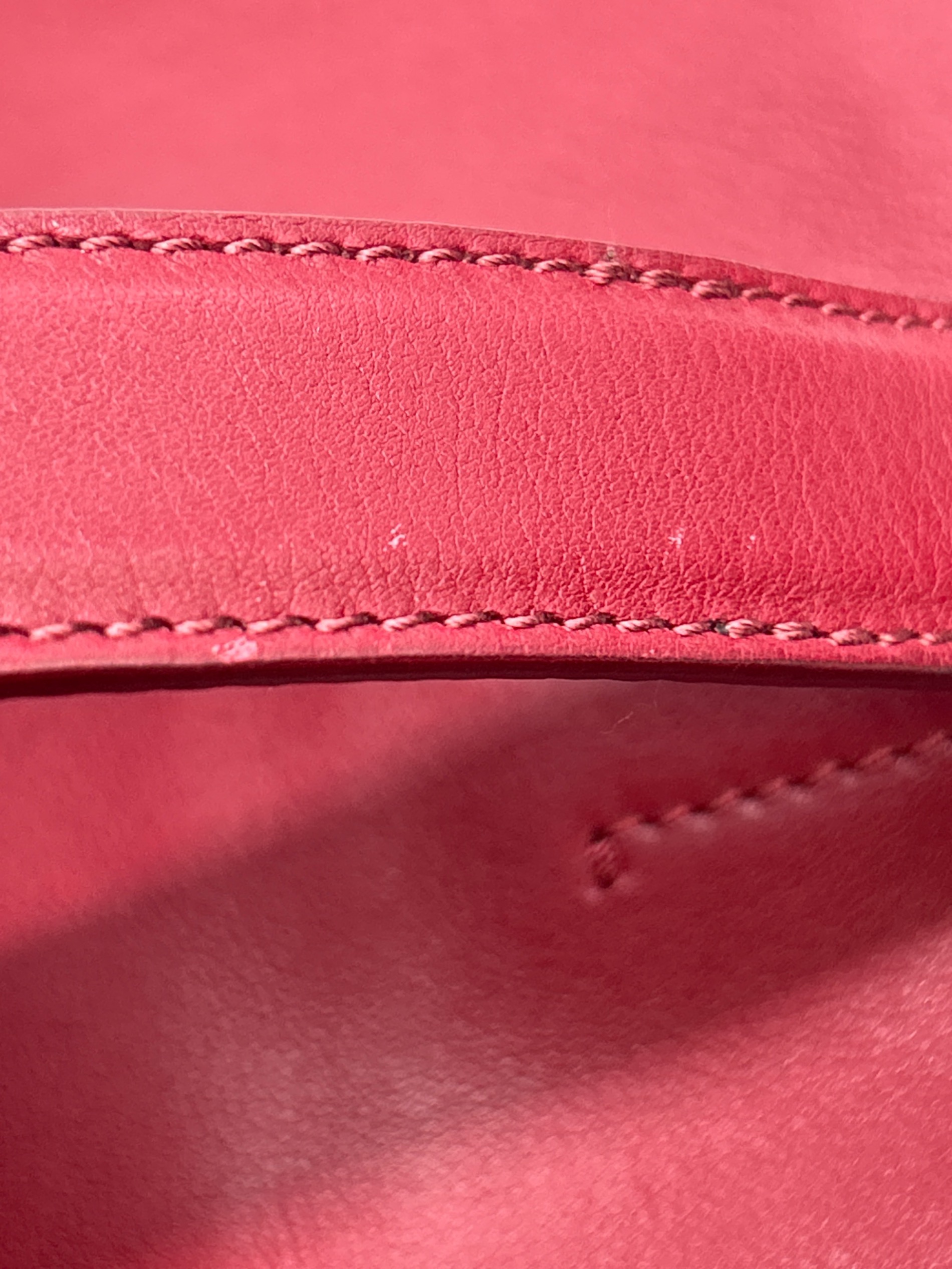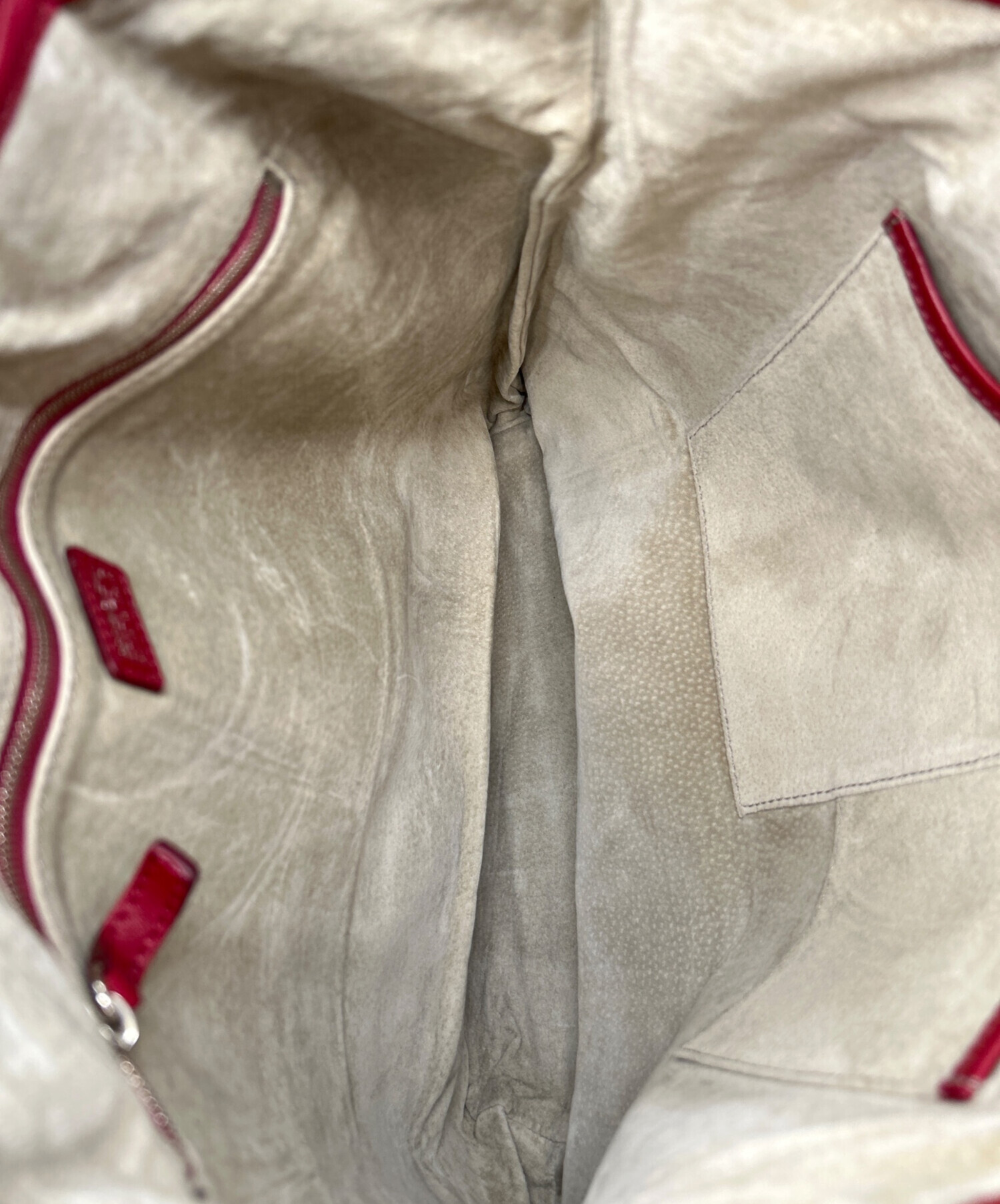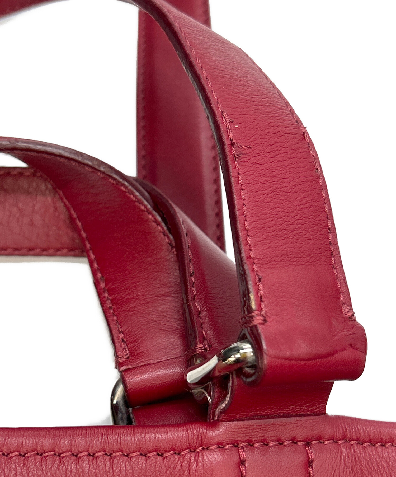| 状態 | 表面にスレ・シワ、内部全体にスレ、内部ポケット引手にクセ、持ち手部分全体に使用感・スレ・シワ・キズ・小キズ・ホツレ、ストラップ裏面にスレ有 こちらの商品は中古品の為、使用に伴います細かなキズ、汚れがございます。店頭にて展示販売を行っている為、記載に無い細かなキズ、汚れが見受けられる場合がございます。 |