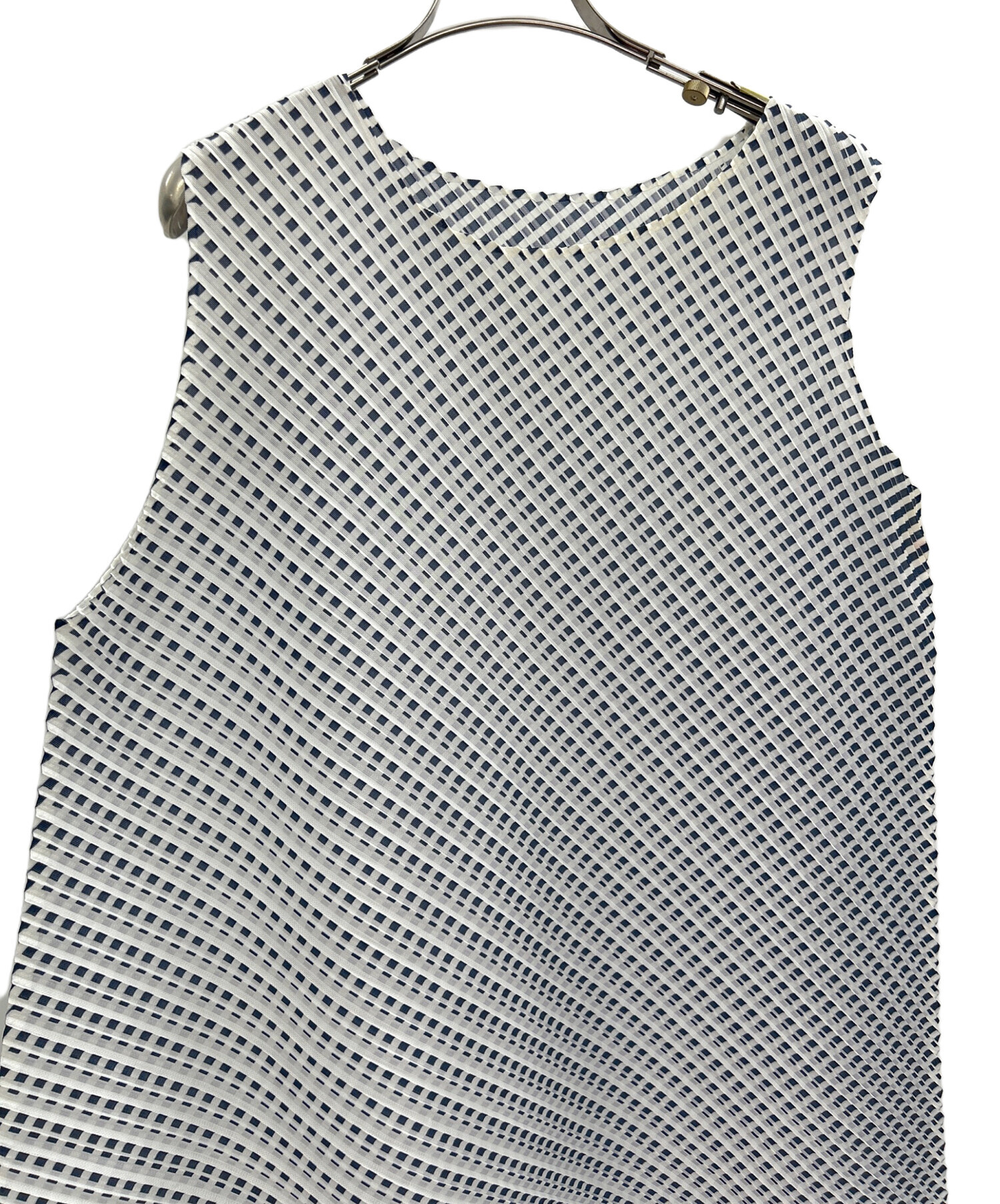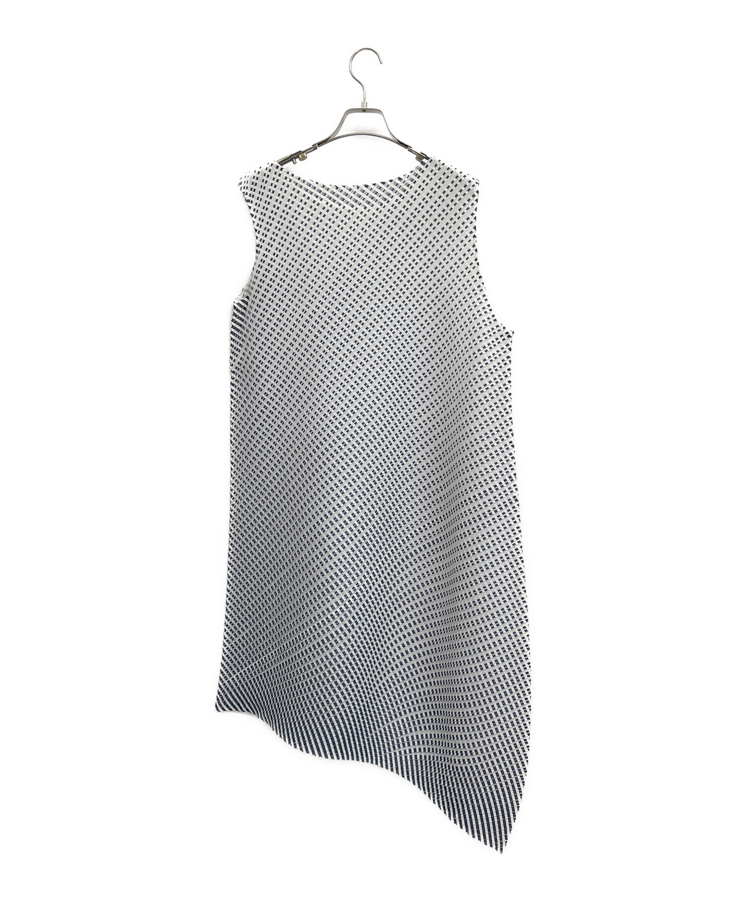 • PLEATS PLEASE(プリーツプリーズ)PLEATS PLEASE (プリーツプリーズ) ノースリーブワンピース ネイビー×ホワイト サイズ:5の古着・服飾アイテム 左脇にヨゴレ有