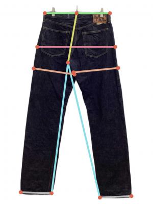 • KAPITAL(キャピタル)KAPITAL (キャピタル) デニムパンツ インディゴ サイズ:W36の古着・服飾アイテム 後ろ身頃左ポケット下にシミ有