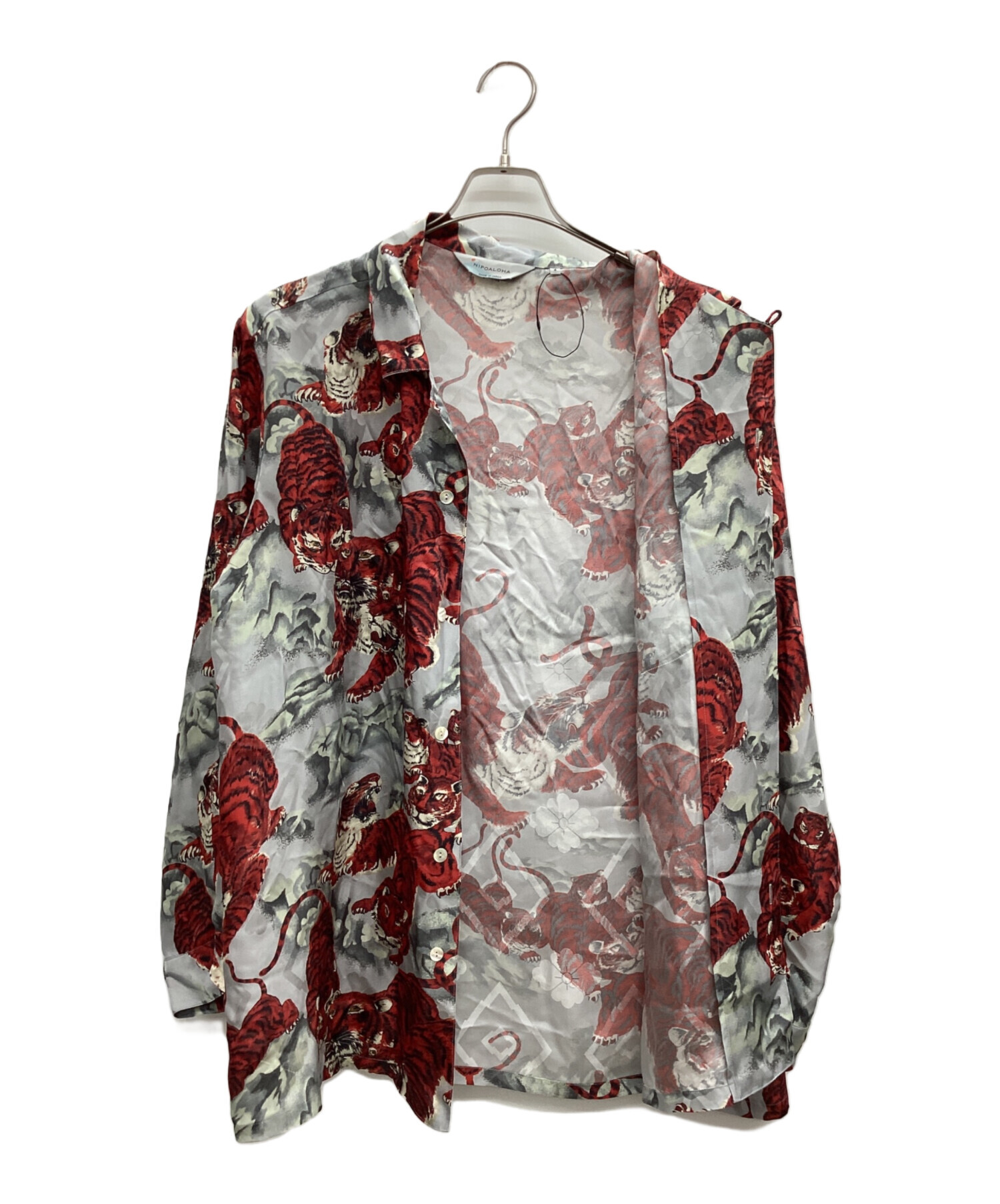 | スタッフコメント | NIPOALOHA(二ポアロハ)のSILK LONG SLEEVE ALOHA。全面に施された躍動感のある百虎が目を引くデザイン。光沢がある肌触りの良いシルク素材で、とても着心地が良い一着です。 |