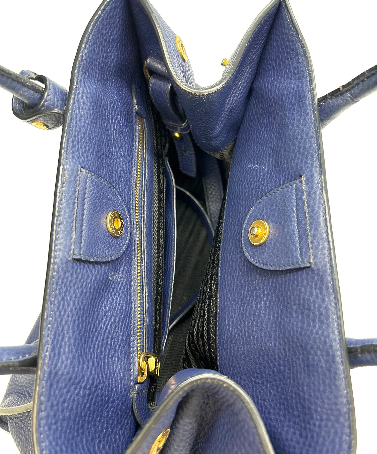 • PRADA(プラダ)PRADA (プラダ) 2WAYバッグ ネイビーの古着・服飾アイテム 底面金具にハガレ有