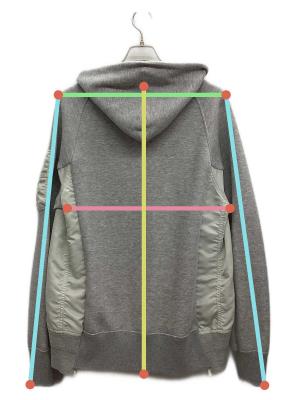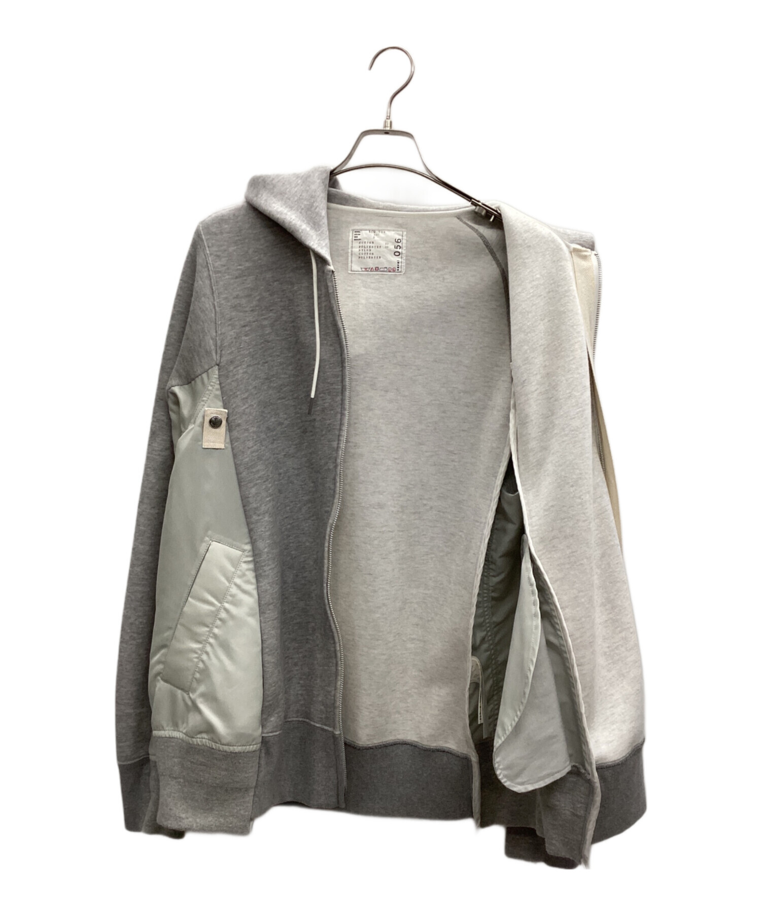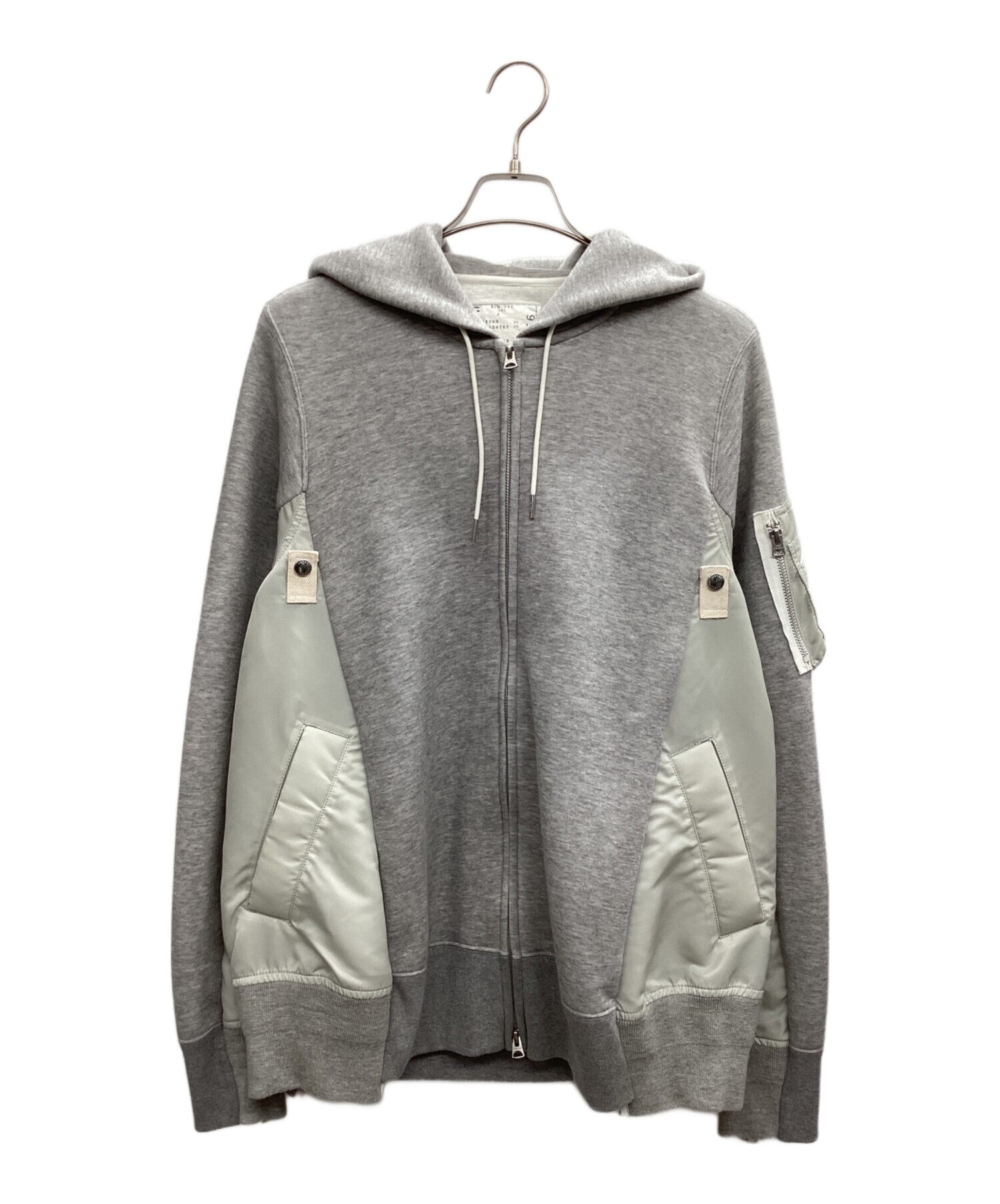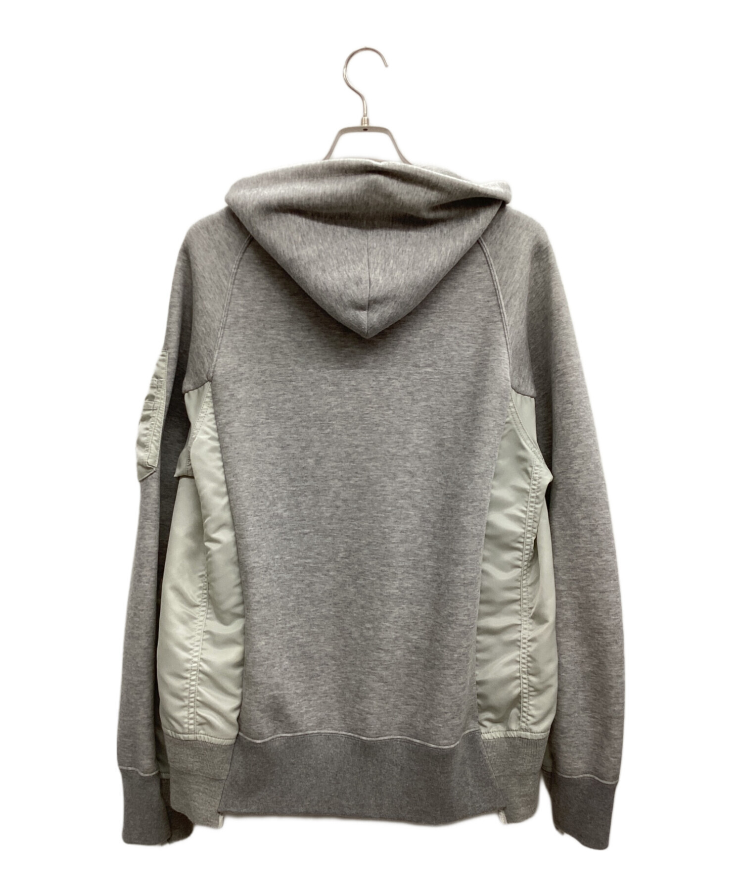 • sacai(サカイ)sacai (サカイ) Sponge Sweat x Nylon Twill Hoodie グレー サイズ:3の古着・服飾アイテム 左袖口にシミ有