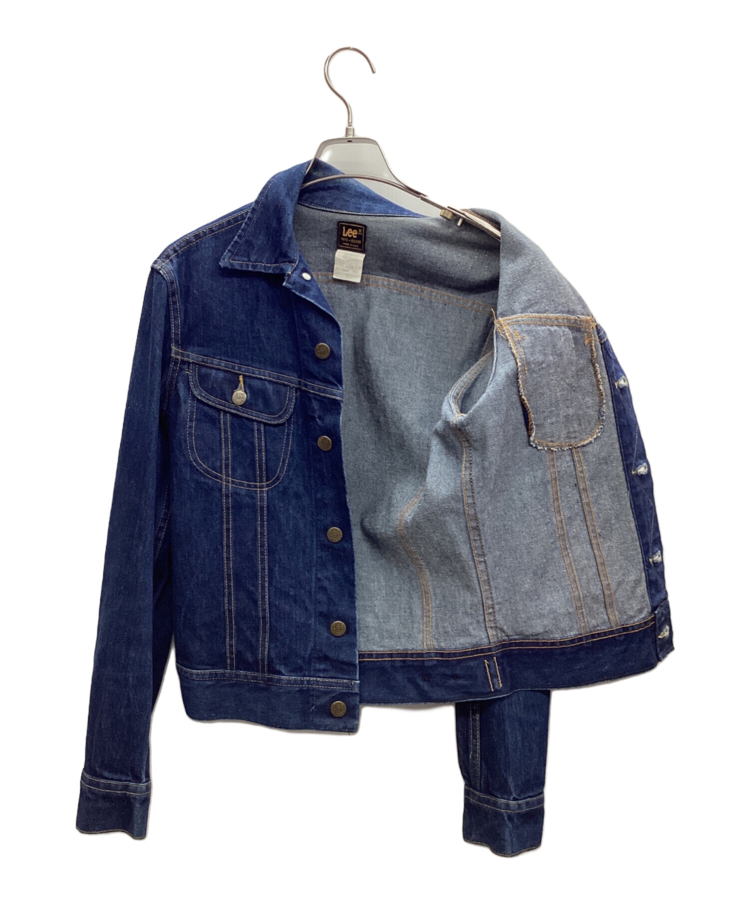 | スタッフコメント | Leeの伝統的なデニムジャケット「101-J」は、スリムなシルエットが特徴です。またオーソドックスなデザインは、様々なコーディネートに活用でき便利。タグは80sに見られる仕様ですが、ユニオンチケットが残っているので70年代後半頃の一着と思われます。 |