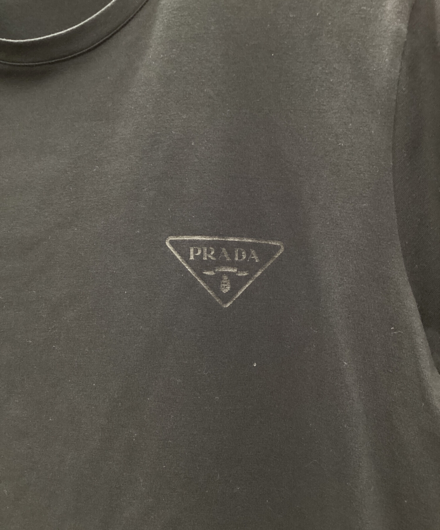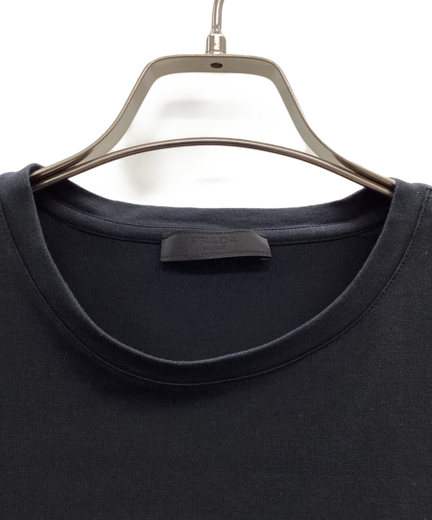 | スタッフコメント | PRADA(プラダ)のトライアングルロゴプリントカットソー。一見シンプルですが、肩部分に異素材切替が施されたデザイン性の効いた一着です。 |