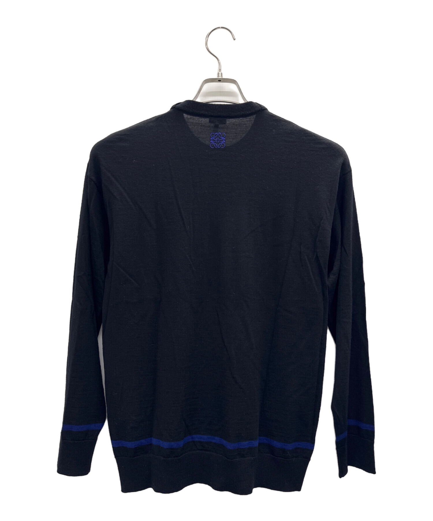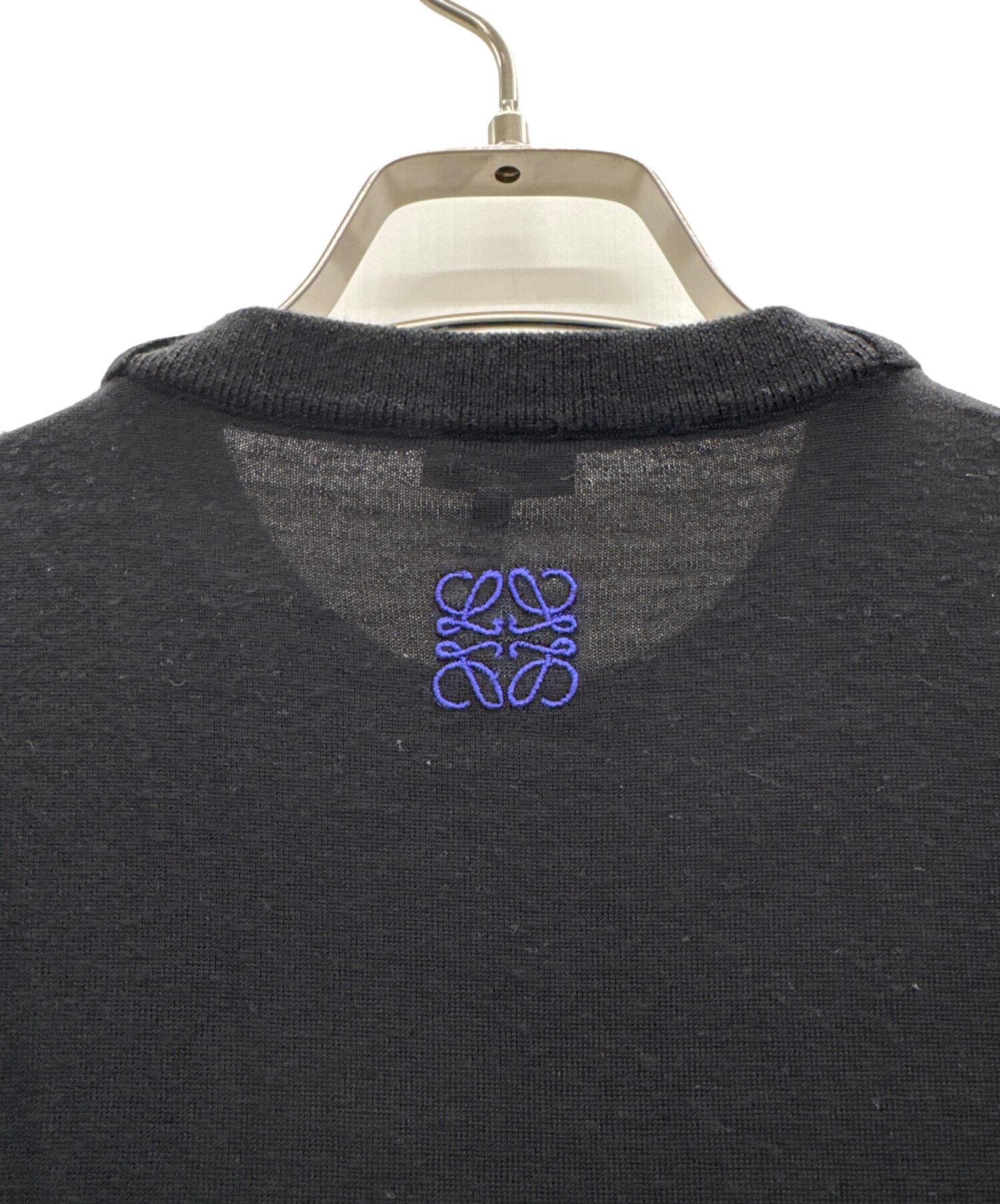 • LOEWE(ロエベ)LOEWE (ロエベ) アナグラム刺繍ウールニット ブラック×パープル サイズ:XSの古着・服飾アイテム 後ろ見頃左脇付近にホツレ有