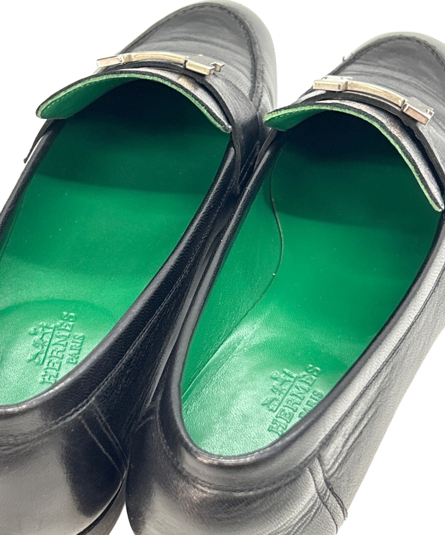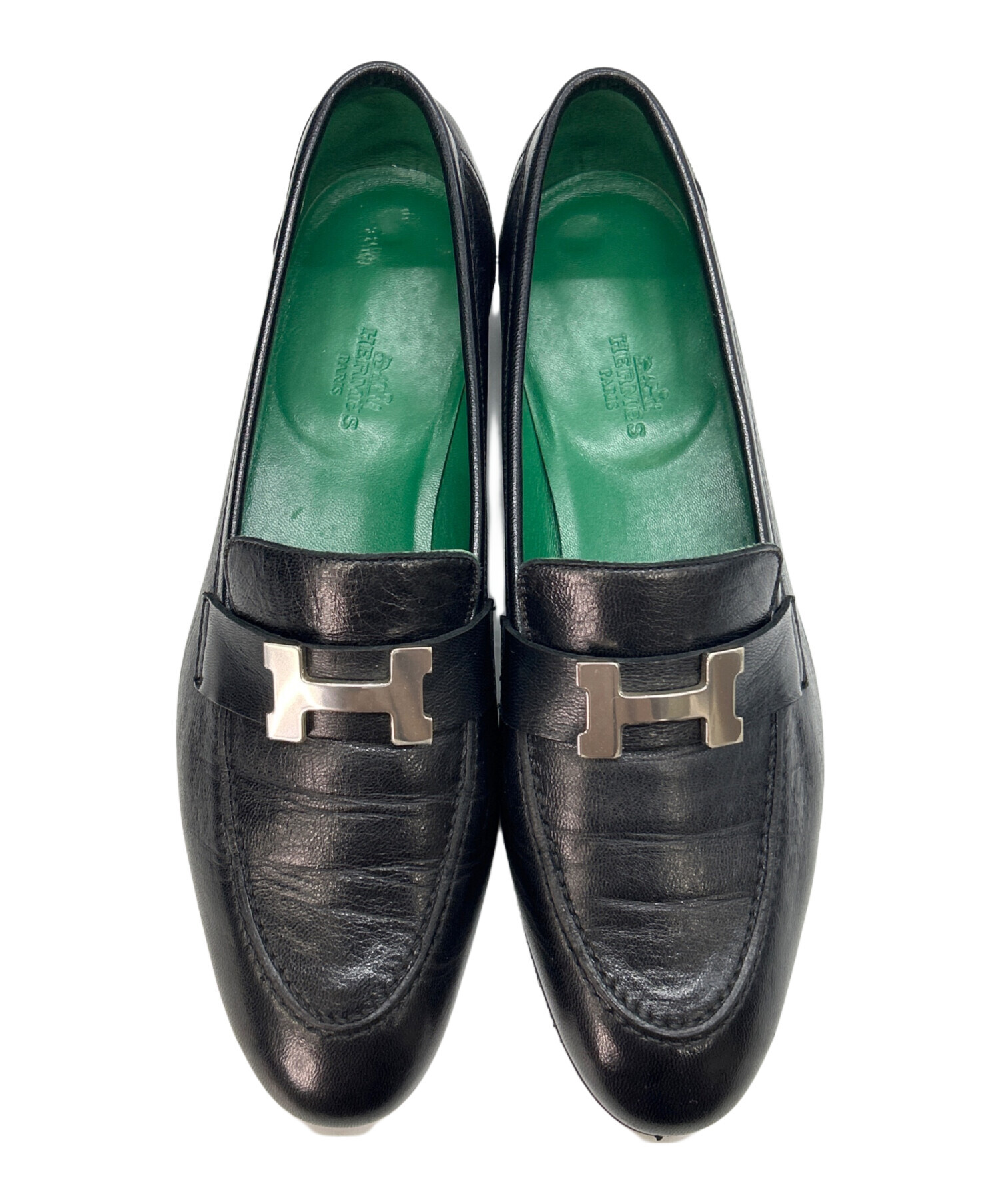 • HERMES(エルメス)HERMES (エルメス) ローファー ブラック サイズ:38.1/2の古着・服飾アイテム インソールにヘコミ・スレ有