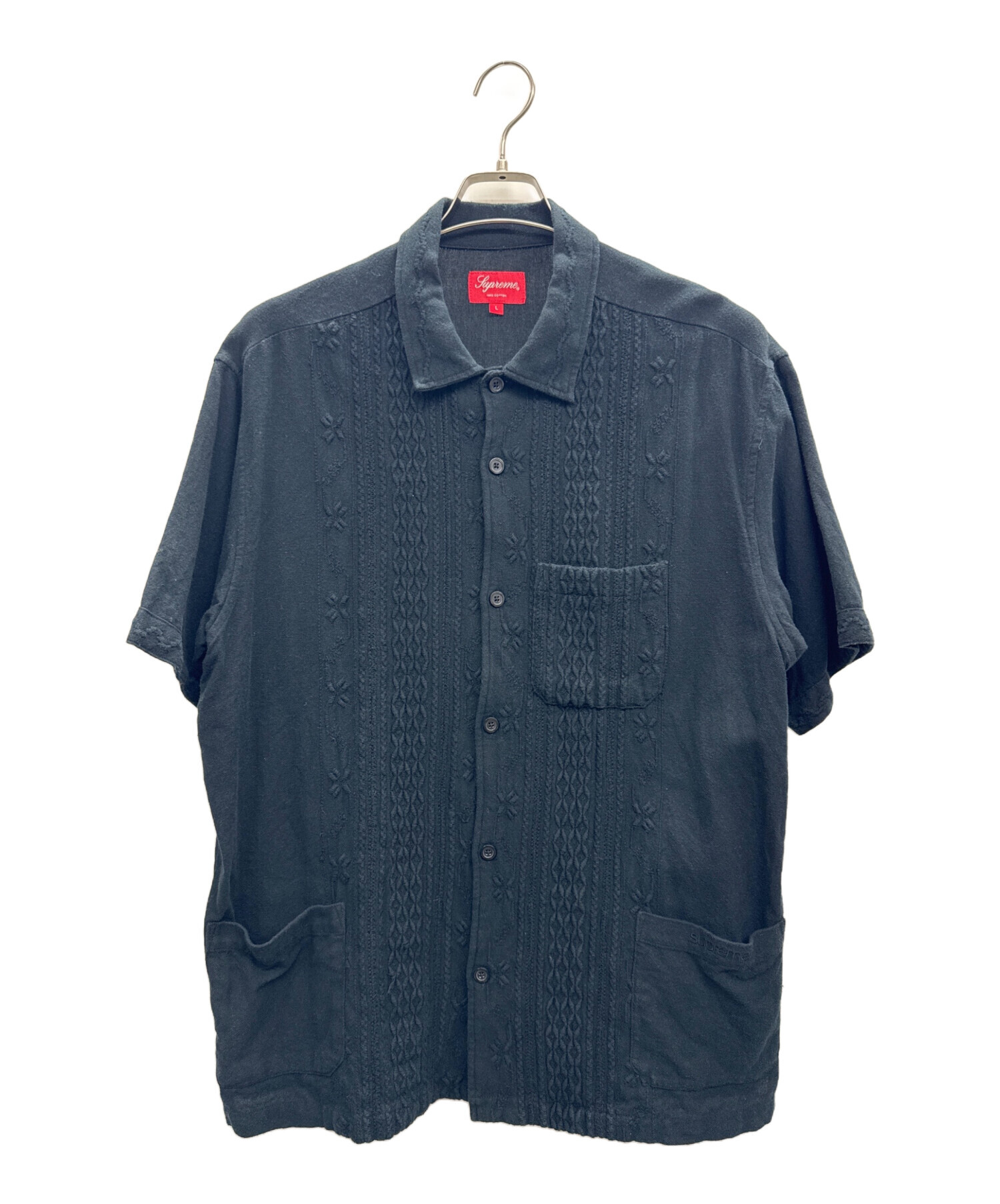 • SUPREME(シュプリーム)SUPREME (シュプリーム) Embroidered S/S Shirt ブラック サイズ:Lの古着・服飾アイテム 前面下部にホツレ有