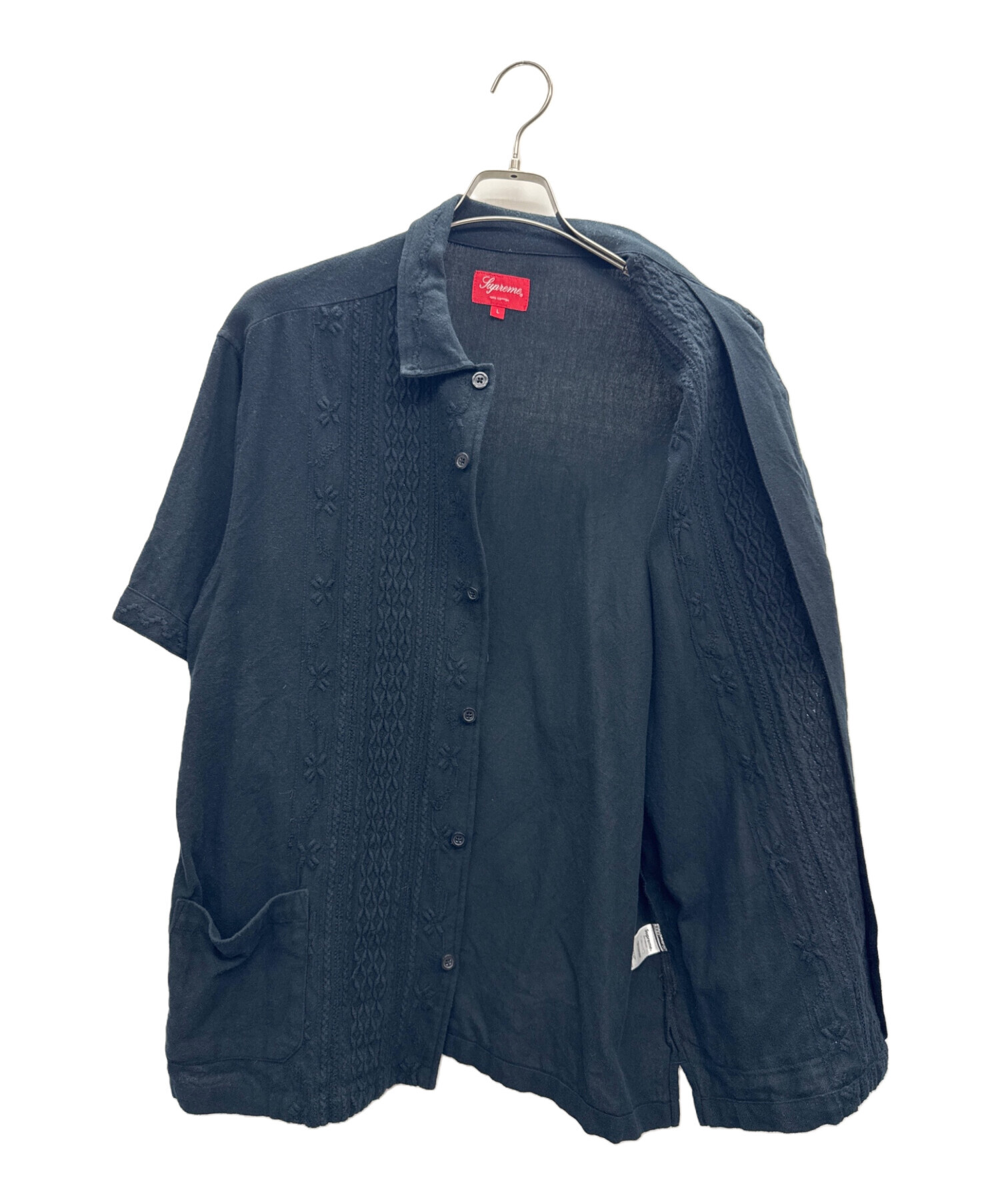 • SUPREME(シュプリーム)SUPREME (シュプリーム) Embroidered S/S Shirt ブラック サイズ:Lの古着・服飾アイテム 前面右下部ポケット上にホツレ有