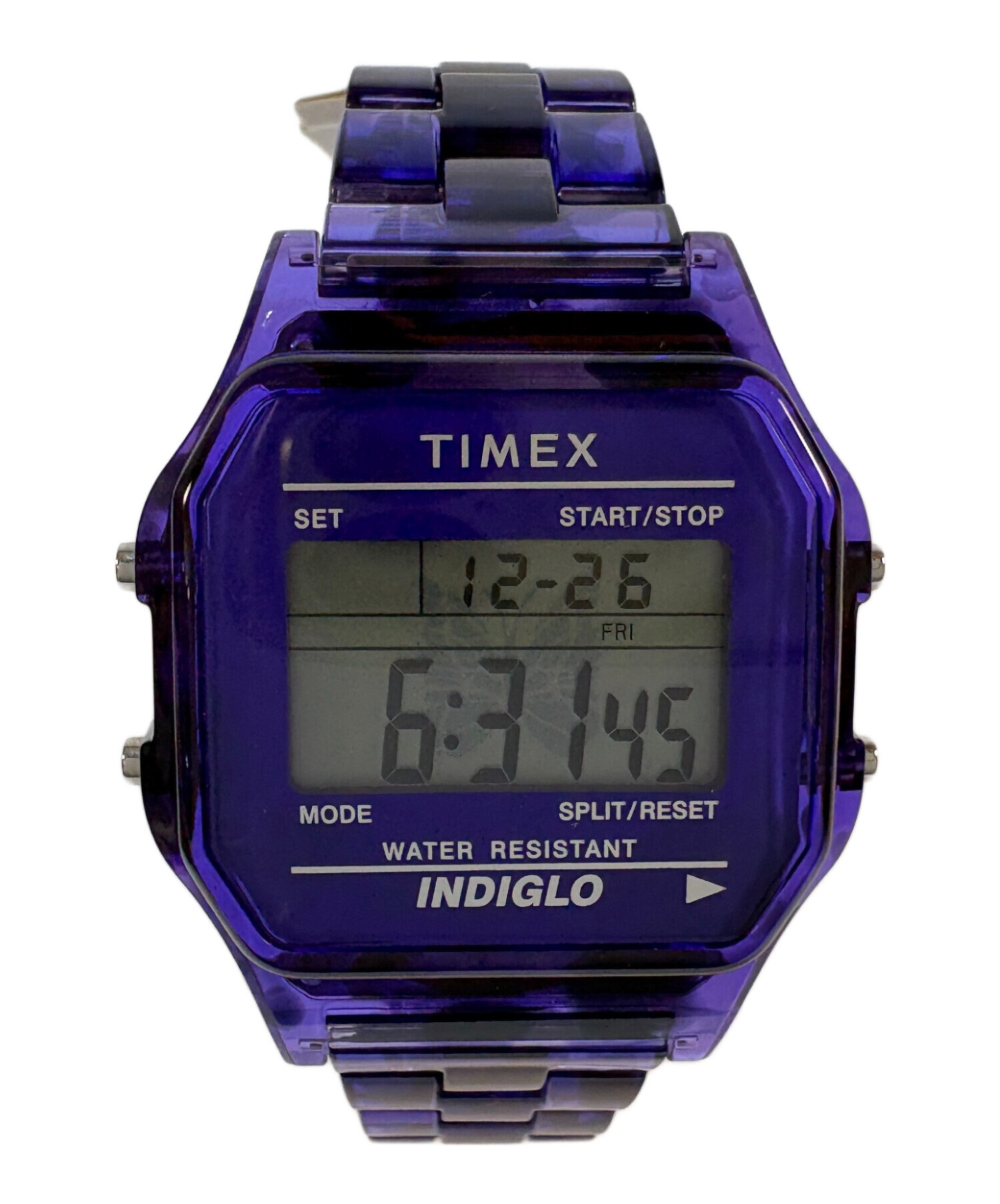 | スタッフコメント | BEAMS BOYの25周年記念で2023年に発売されたトリプルネームのコラボウォッチです。 ベースとなったのはTIMEXの王道デジタルウォッチ「Classic Digital」。本体はNeedlesらしいパープルのタイダイ柄、"INDIGLO"バックライトにはパピヨンが浮かび上がります。 デザインと安定した実用性を両立した1本です。 |