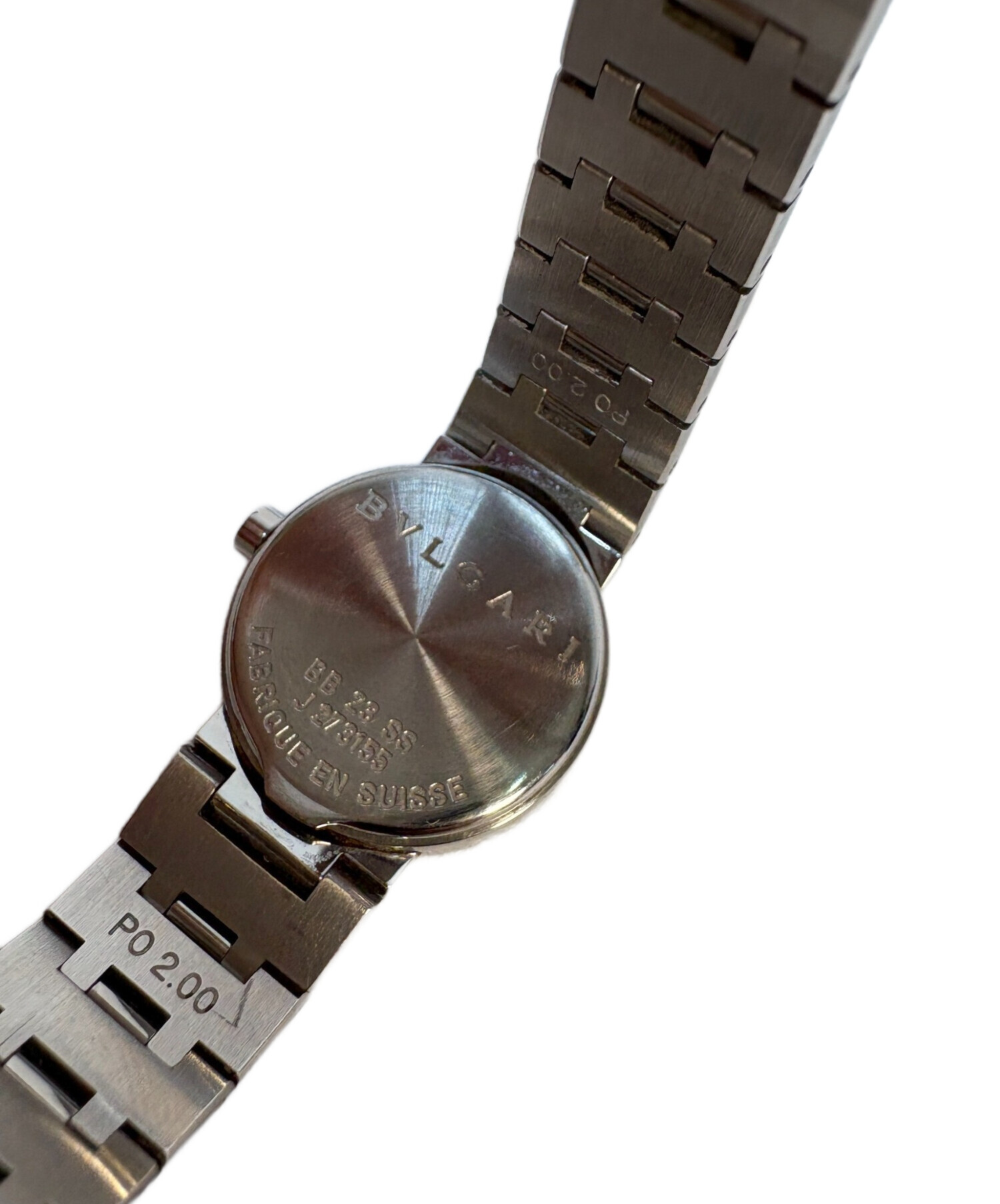 | スタッフコメント | ブルガリの王道ウォッチ、ブルガリ・ブルガリの23mmウォッチです。 ダブルロゴのベゼルとテーパーのかかったベルト、曲線と直線の組み合わせが美しく、シンプルなインデックスやマテリアルで全体的にすっきりとした印象です。 |
