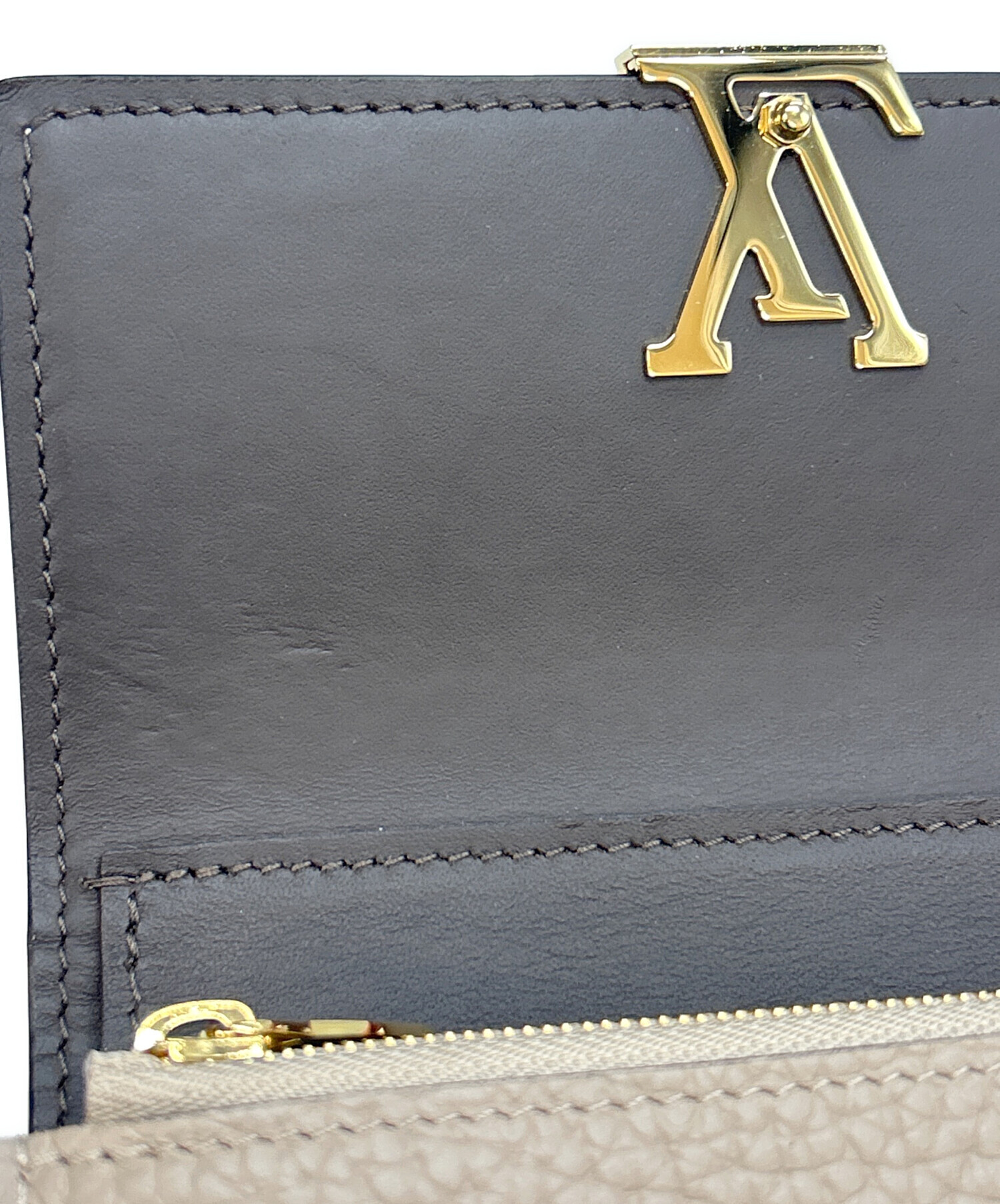 • LOUIS VUITTON(ルイ ヴィトン)LOUIS VUITTON (ルイ ヴィトン) 3つ折り財布 ガレ ポルトフォイユ・カプシーヌ コンパクト グレージュの古着・服飾アイテム フラップ内側にスレ・小キズ有