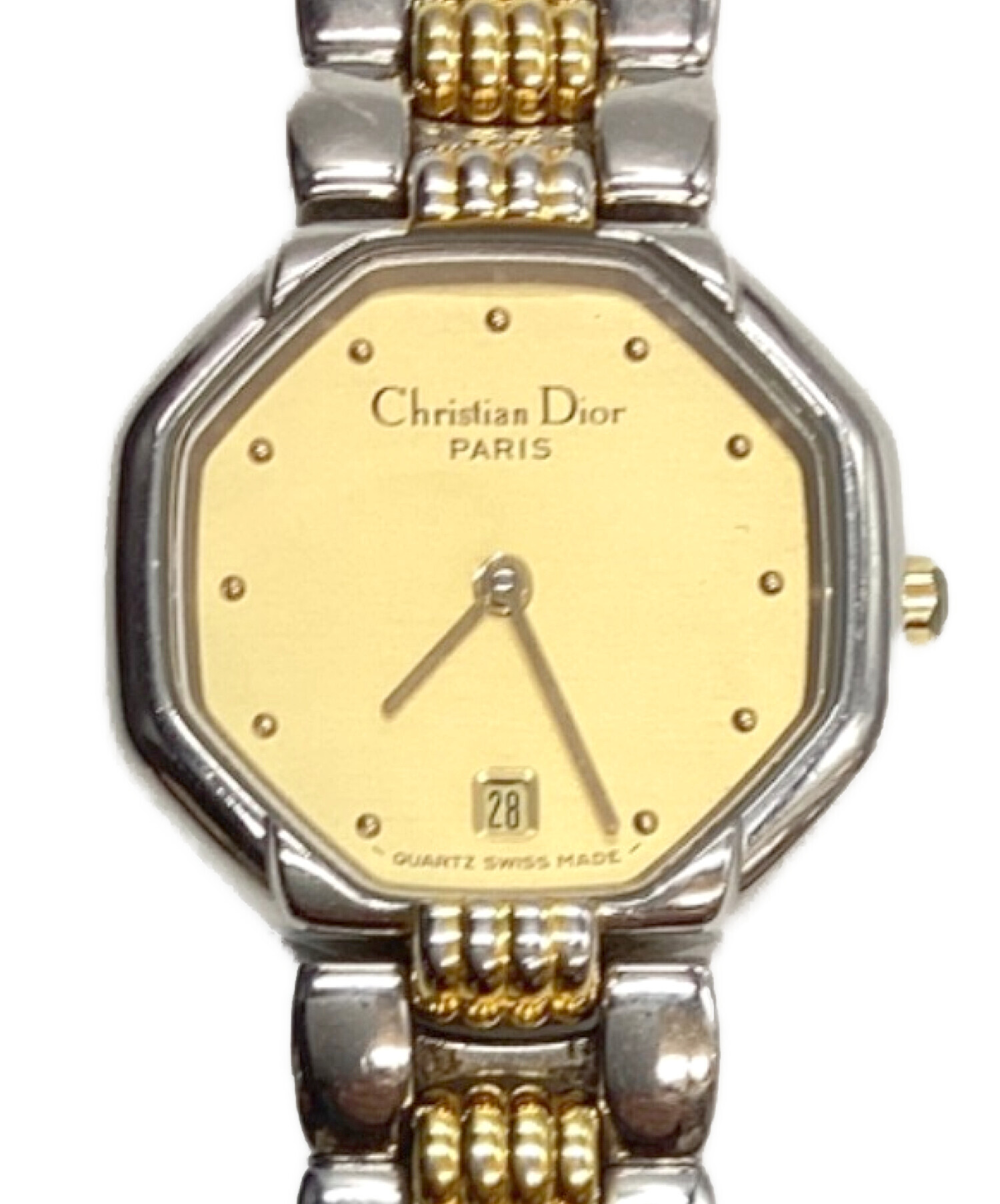 | スタッフコメント | フランスのラグジュアリーブランドChristian Dior(クリスチャンディオール)は、バッグからアパレルまで多岐にわたり展開しています。こちらのオクタゴンはドレッシーな小振りなデザインをその名の通り八角形に落とし込んだ腕時計で、エレガントな雰囲気が漂います。 |