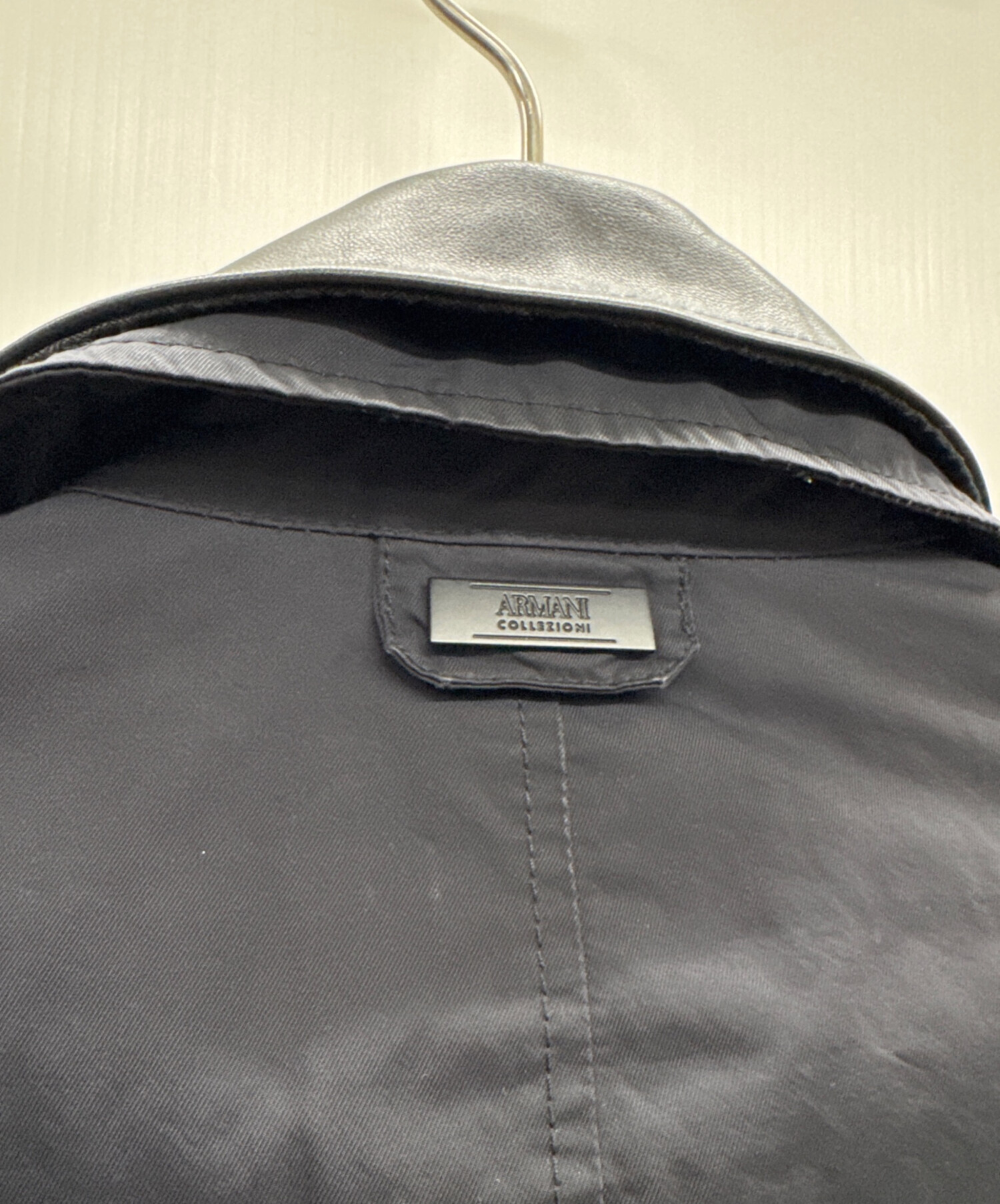 • ARMANI COLLEZIONI(アルマーニ コレツィオーニ)ARMANI COLLEZIONI (アルマーニ コレツィオーニ) レザー切替コート ブラック サイズ:46の古着・服飾アイテム 両袖口内側にスレ、ヨゴレ有