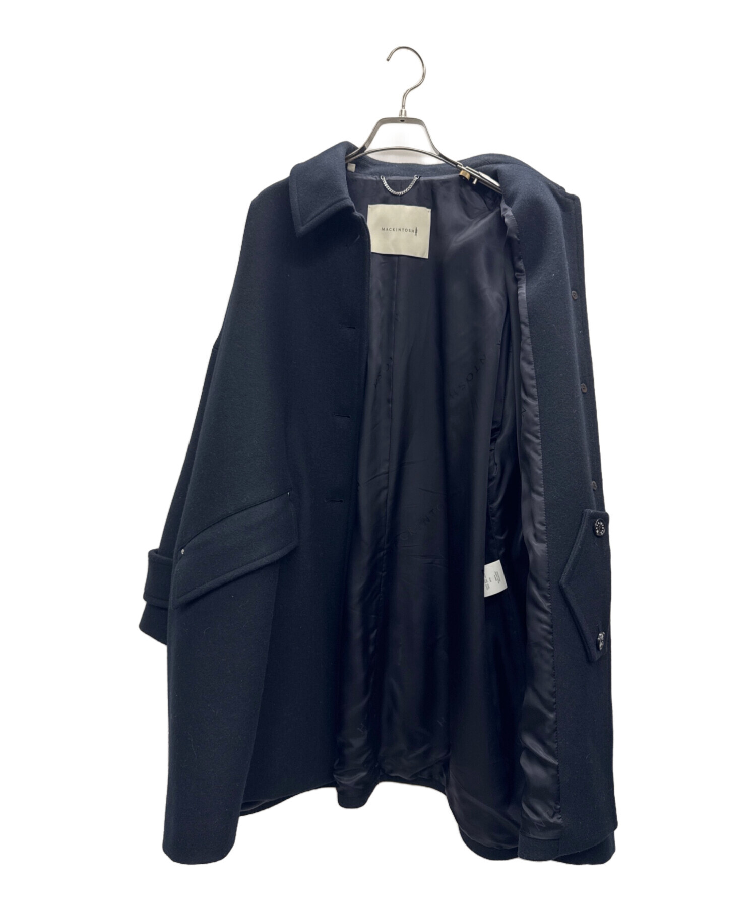 | スタッフコメント | MACKINTOSHマッキントッシュ)のHUMBIE ウールコート。ウール100%で着心地抜群。チンストラップもついており、スタンドカラーとしても着用できる一着です。 |