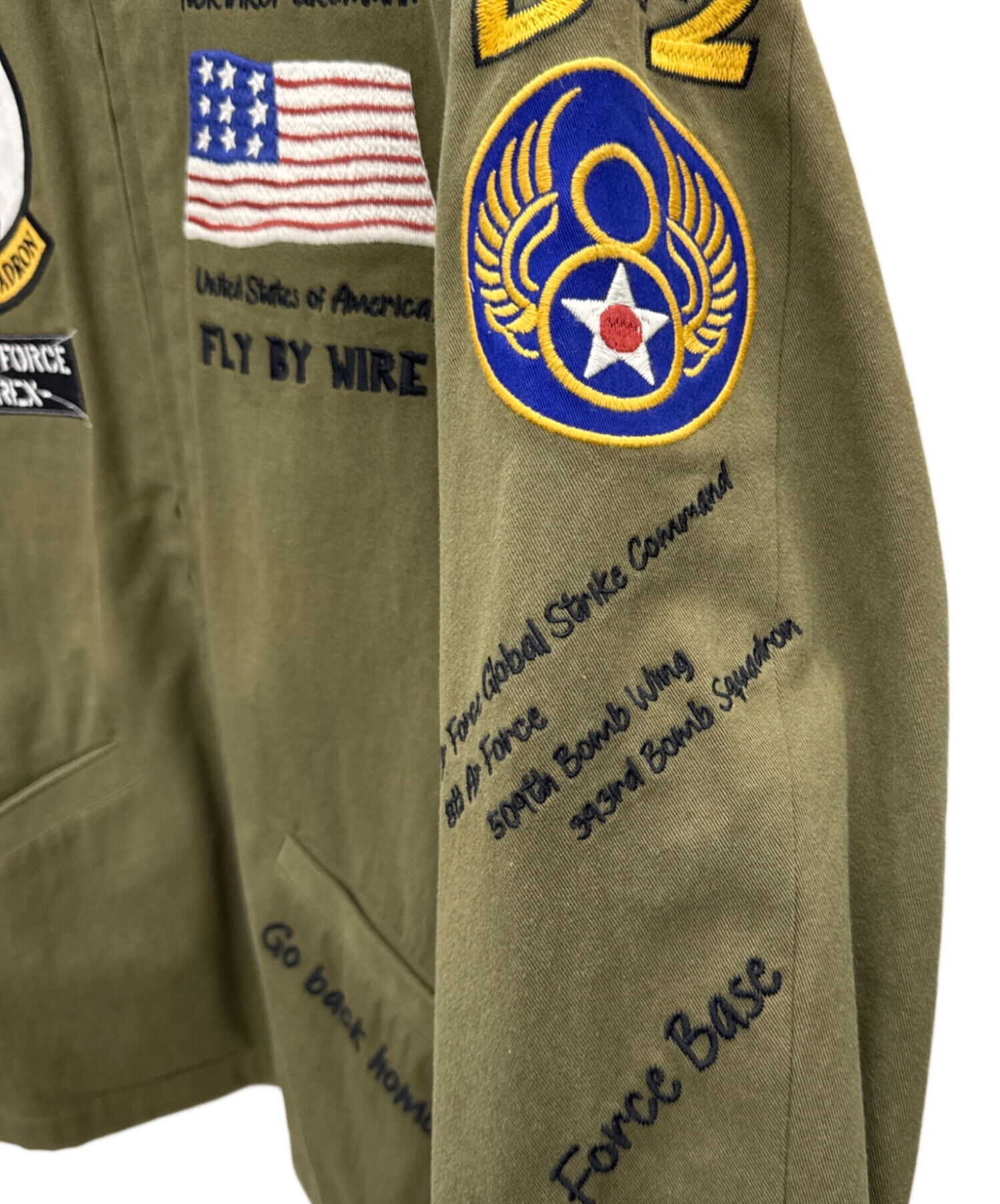 | スタッフコメント | アメリカのミリタリーファッションブランド、AVIREX(アヴィレックス)のB2ジャケット。ワッペン、刺繍、プリントが各所に施されたデザインで、ファッション性が高いアイテムです。 |