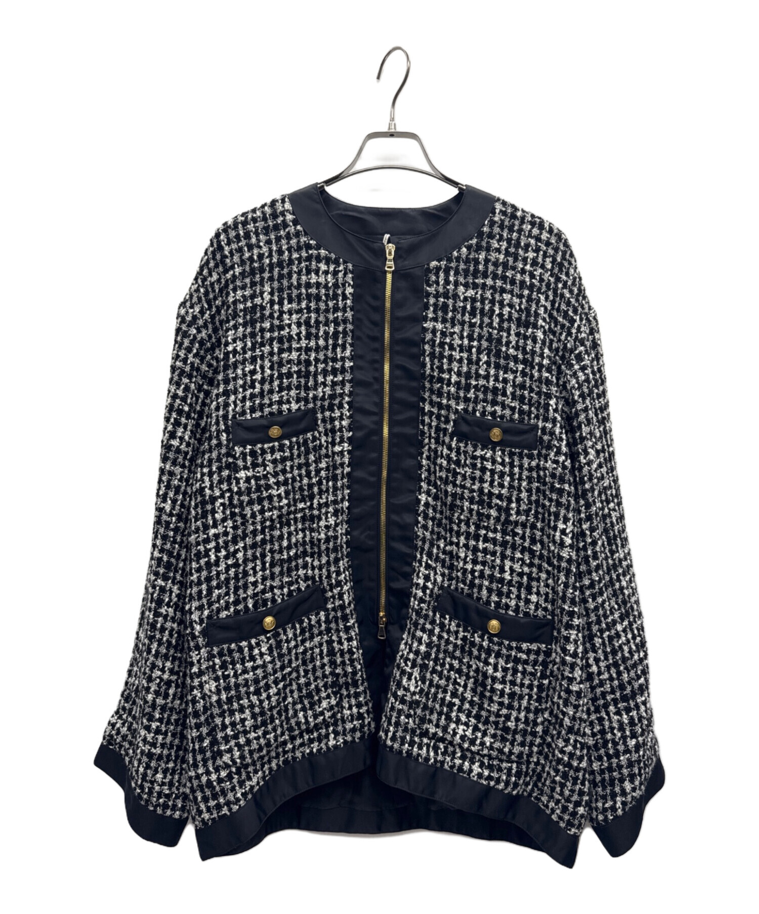 • m's braque(エムズブラック)m's braque (エムズブラック) ツイードジャケット ブラック×ホワイト サイズ:MLの古着・服飾アイテム