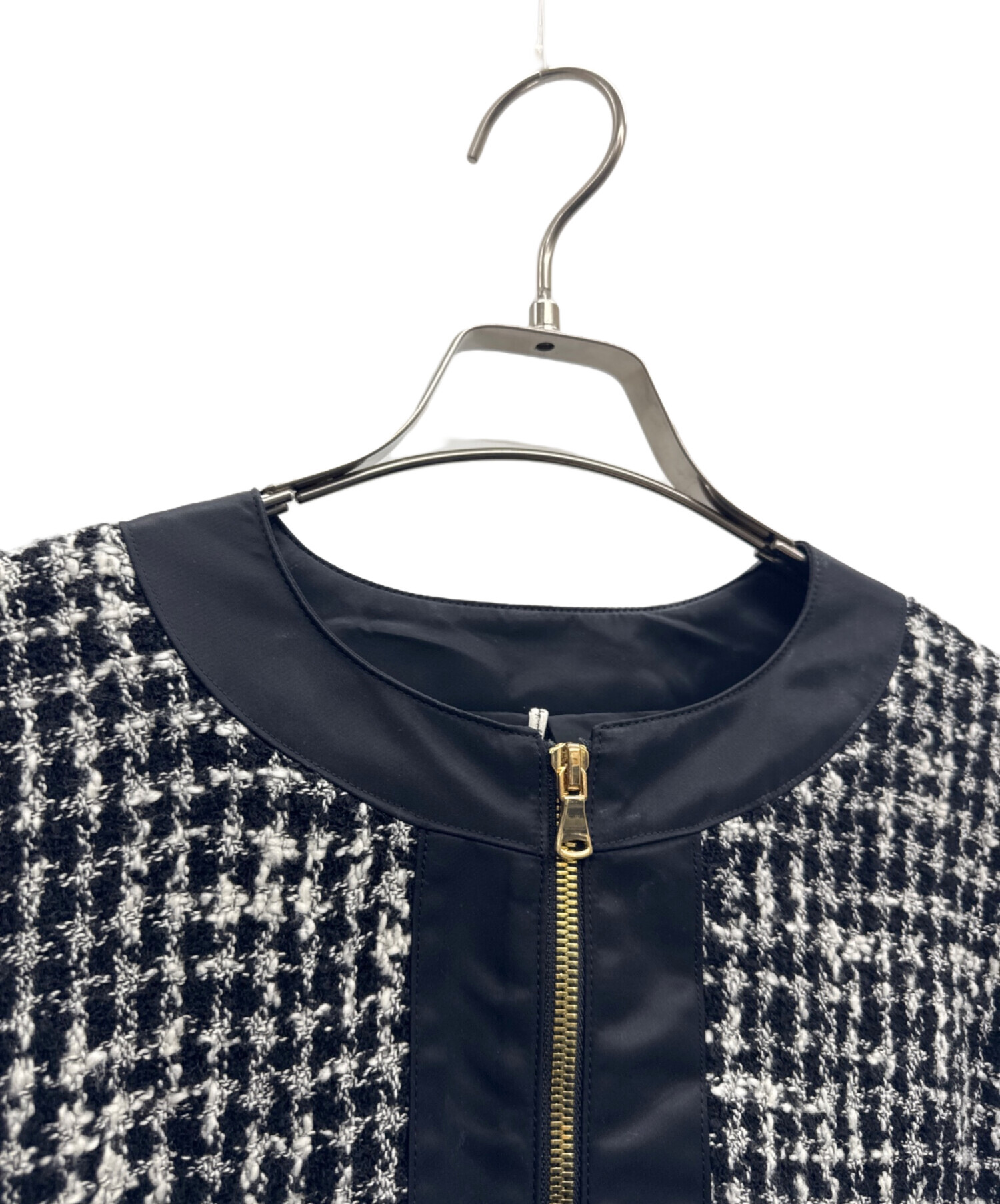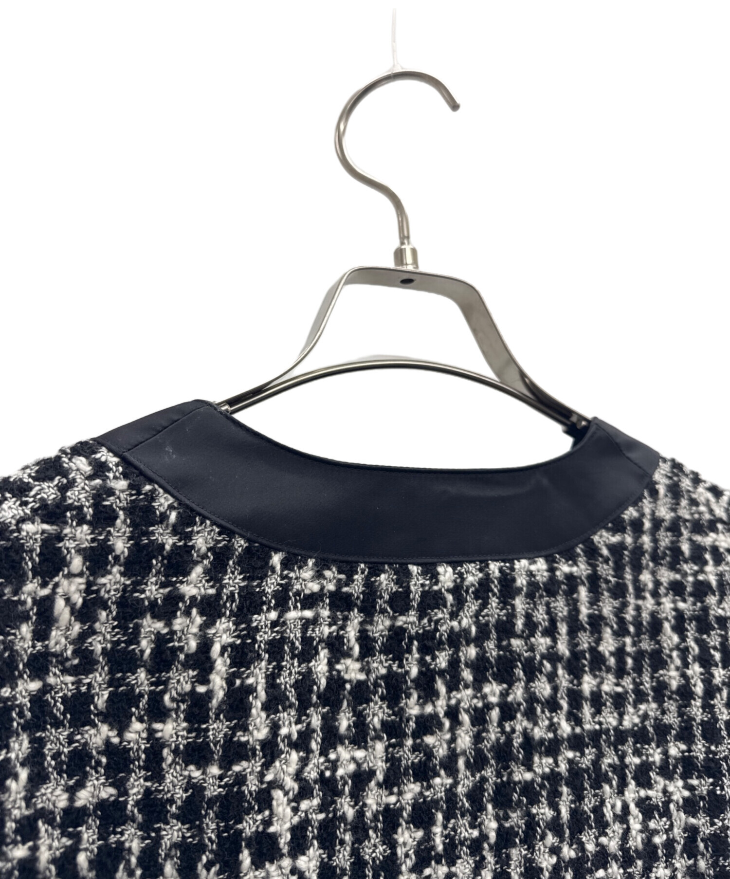 • m's braque(エムズブラック)m's braque (エムズブラック) ツイードジャケット ブラック×ホワイト サイズ:MLの古着・服飾アイテム 首周りにスレ、ヨゴレ有