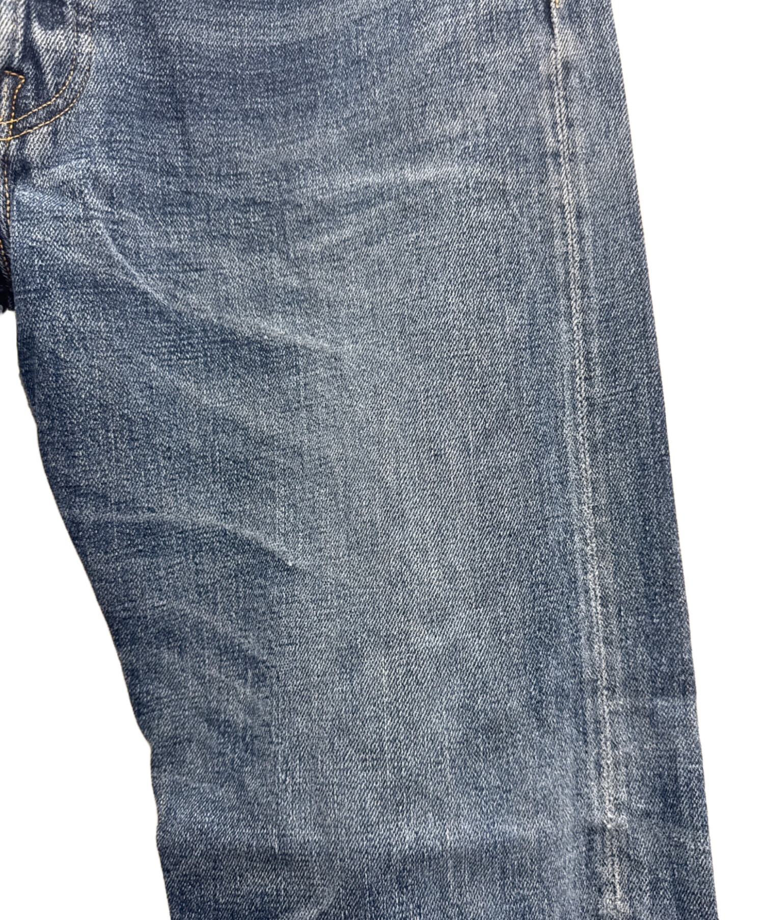| 状態 | 全体的に色落ち有、前面右足上部にシミ有、前面右足膝部分にキズ有、前面右足下部にヨゴレ、シミ有、背面左ポケットにホツレ有、背面右ポケットにスレ有、背面左足膝部分にキズ有、背面左足裾にホツレ有、背面右足部分にキズ有、背面右足裾にホツレ有、両裾内側にホツレ、両足裾上げ跡有(画像参照) こちらの商品は中古品の為、使用に伴います細かなキズ、汚れがございます。店頭にて展示販売を行っている為、記載に無い細かなキズ、汚れが見受けられる場合がございます。 |