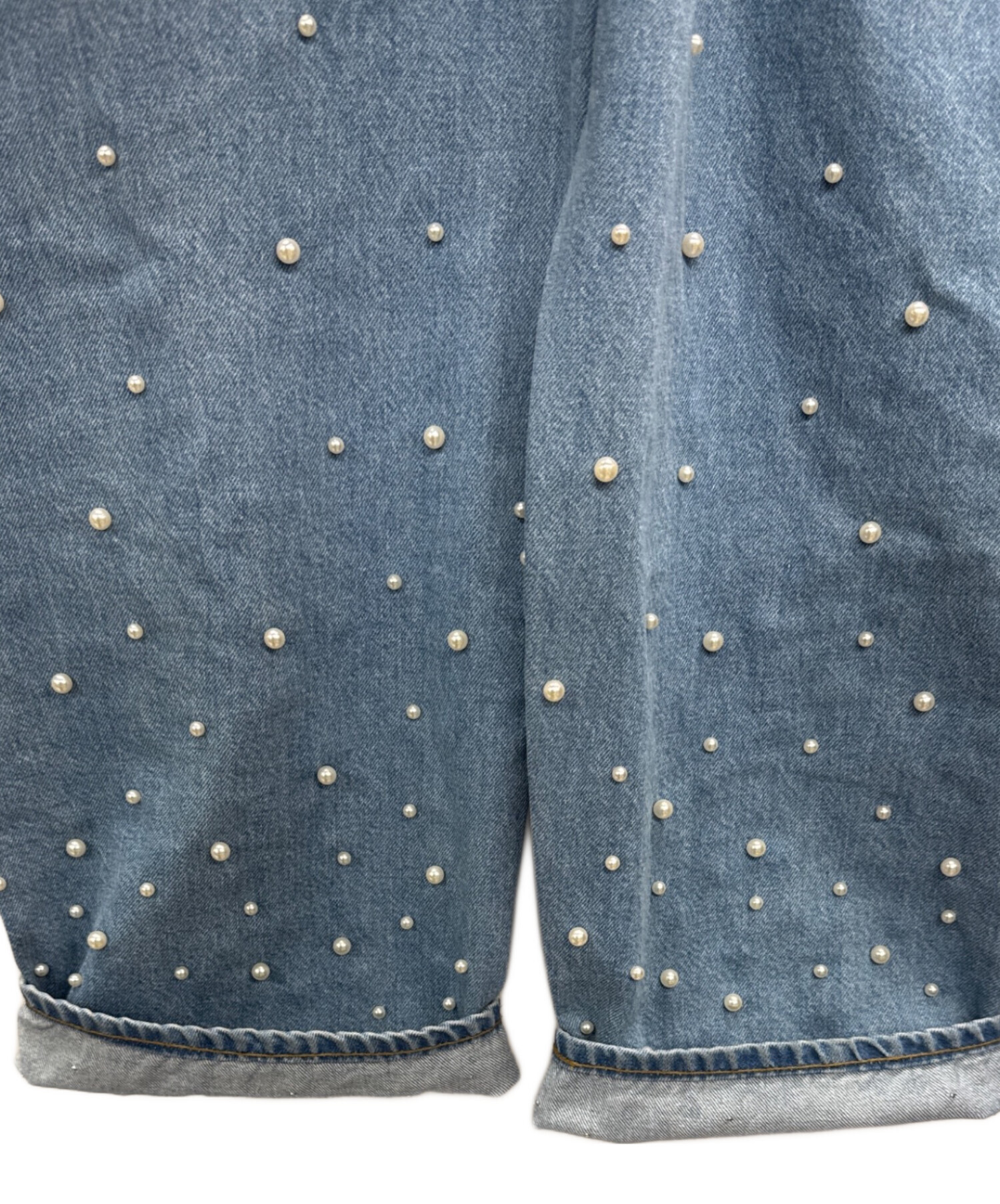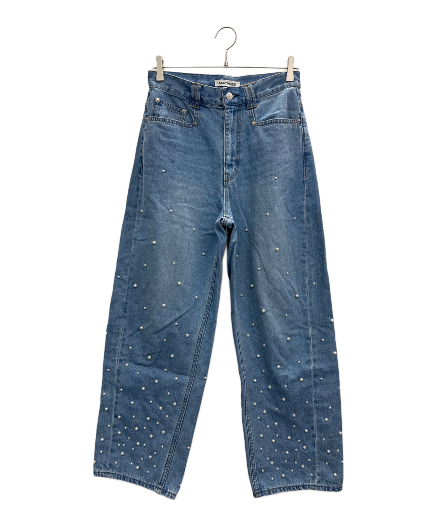 | スタッフコメント | MACPHEE(マカフィー)のパールデニムコクーンテーパードパンツ。下から上にグラデーションのように打たれたパールが目を引くデザインで、コーデの主役になるアイテムです。 |