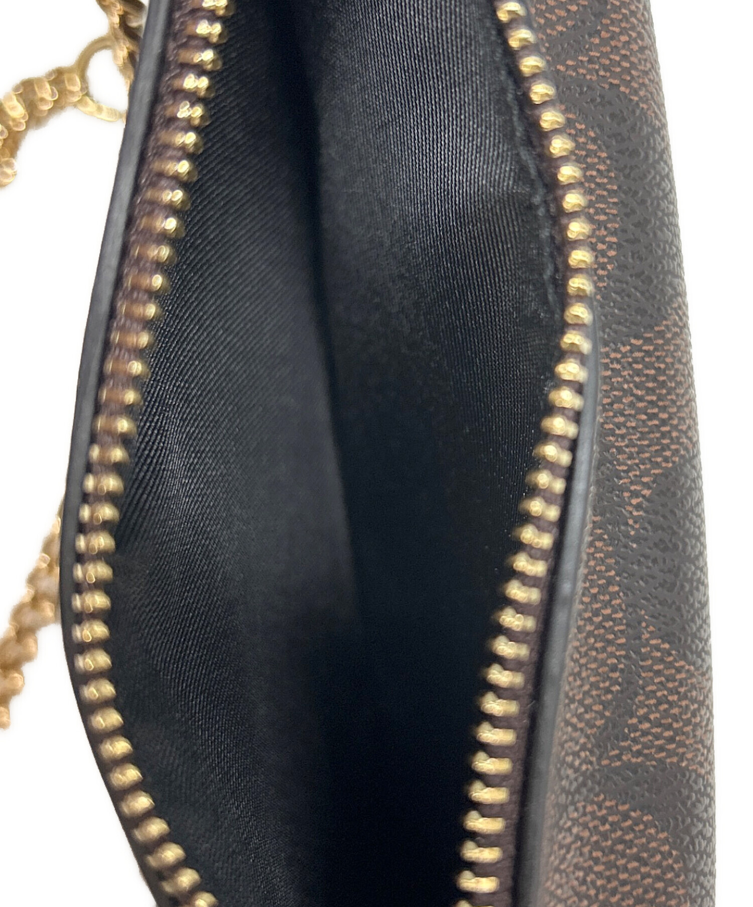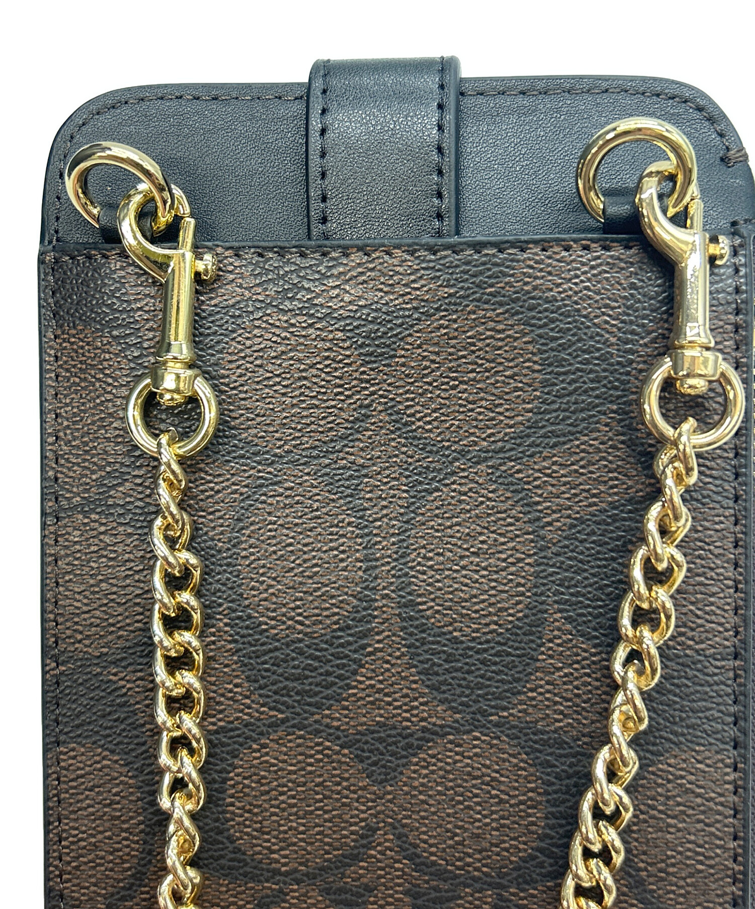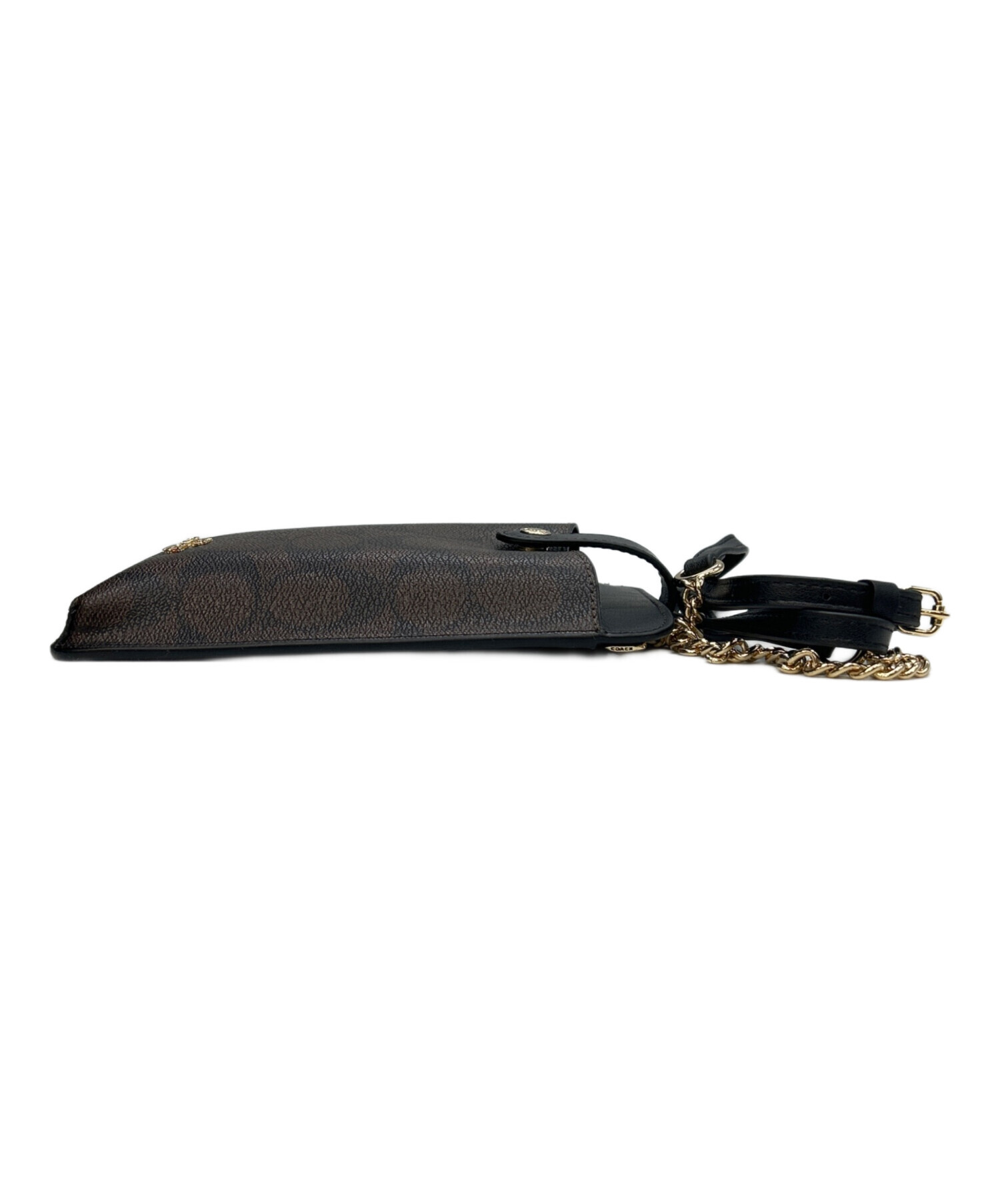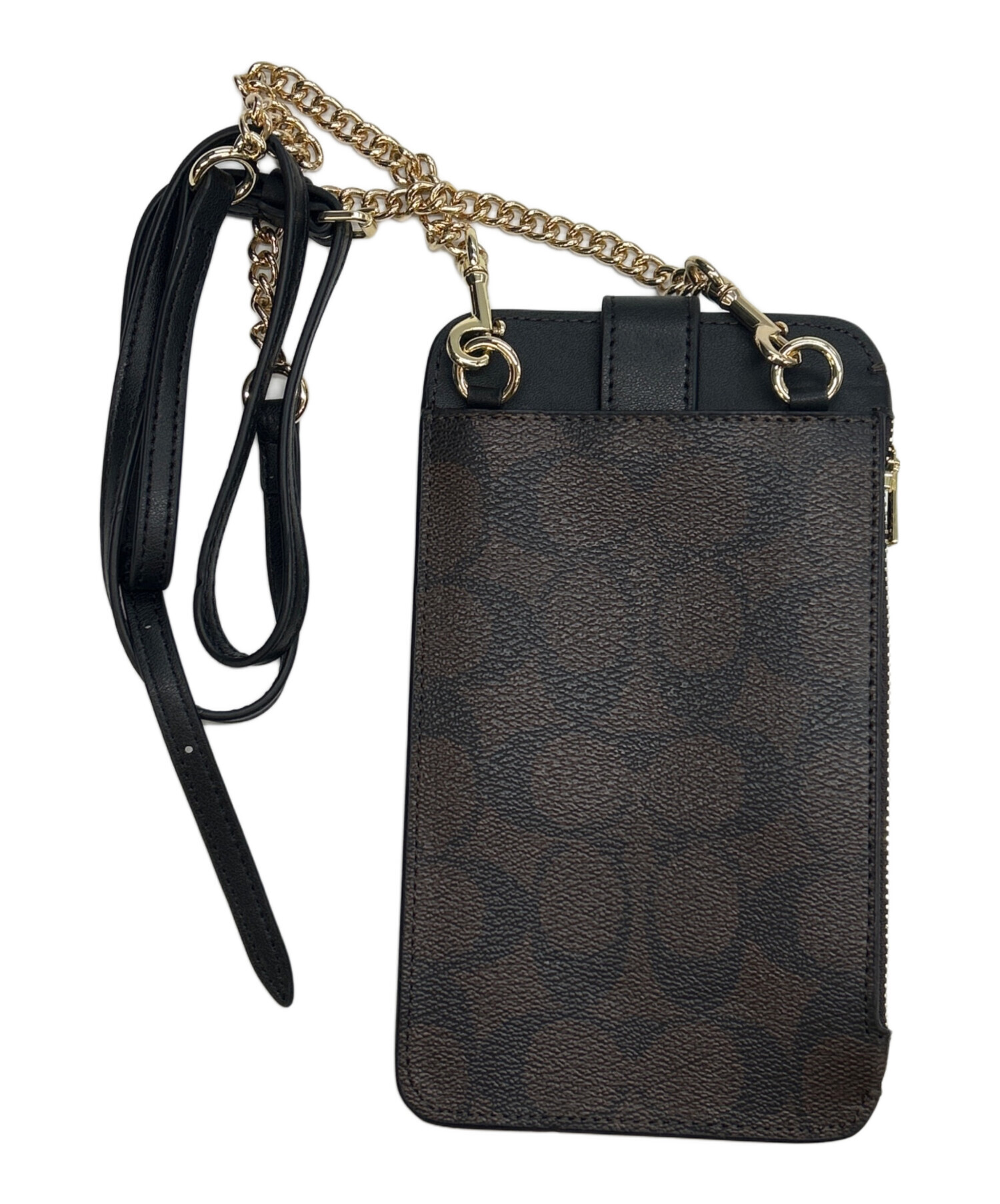 • COACH(コーチ)COACH (コーチ) ショルダーポーチ ブラック×ブラウンの古着・服飾アイテム 裏面中央に小ヨゴレ有