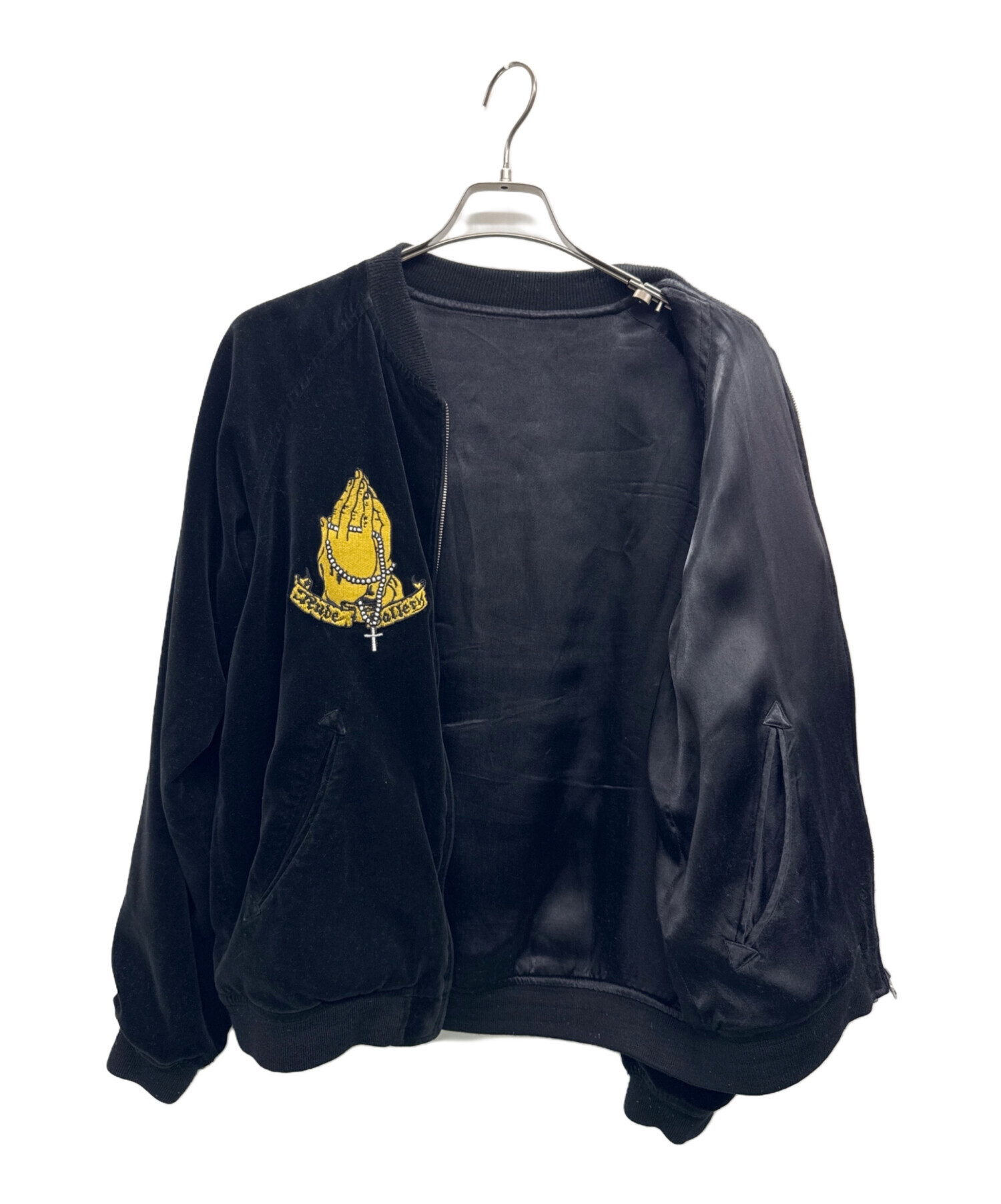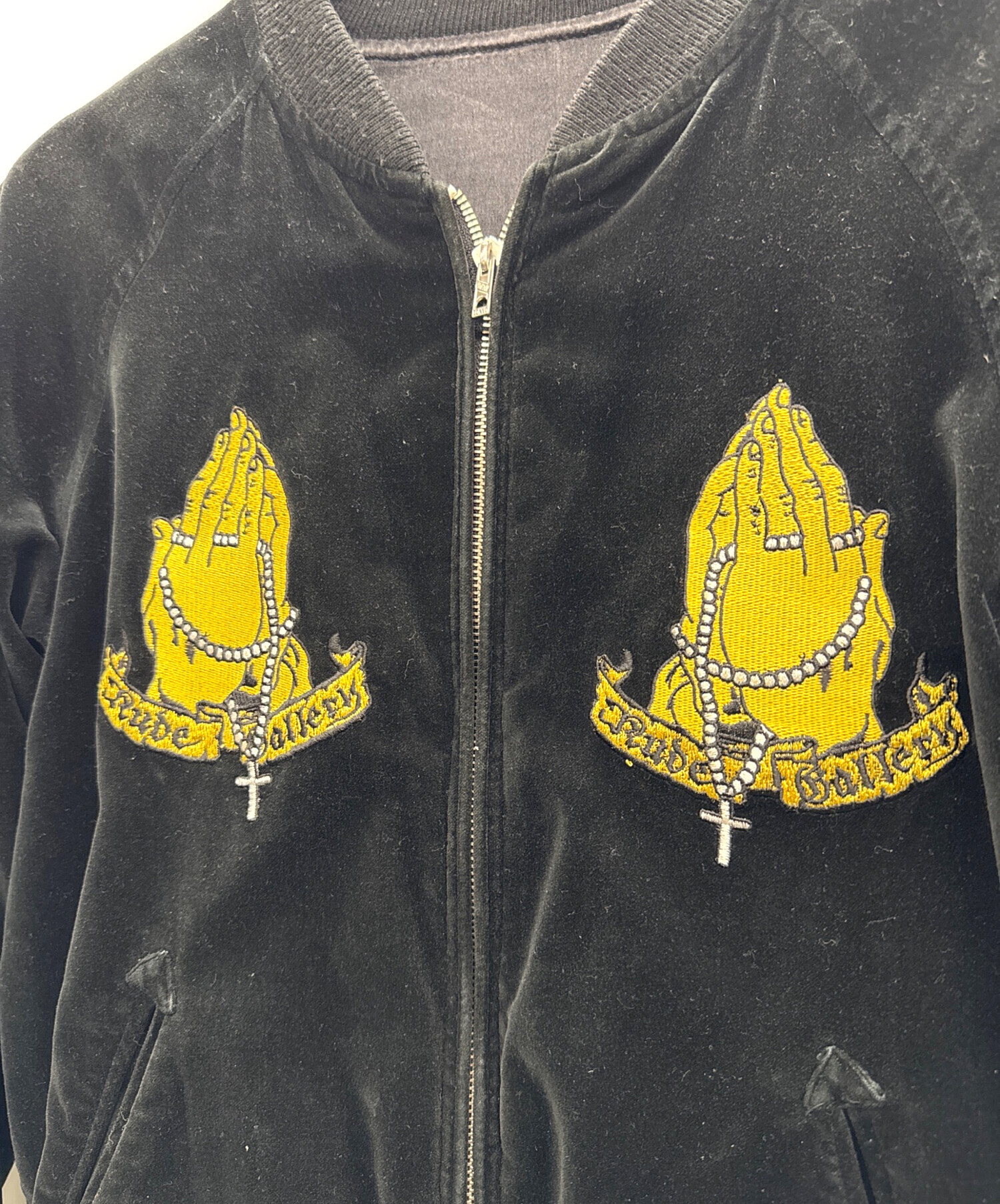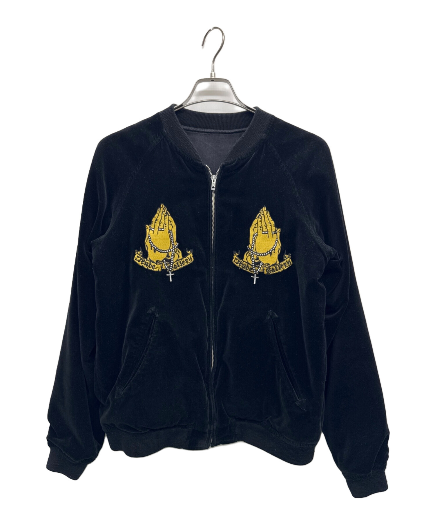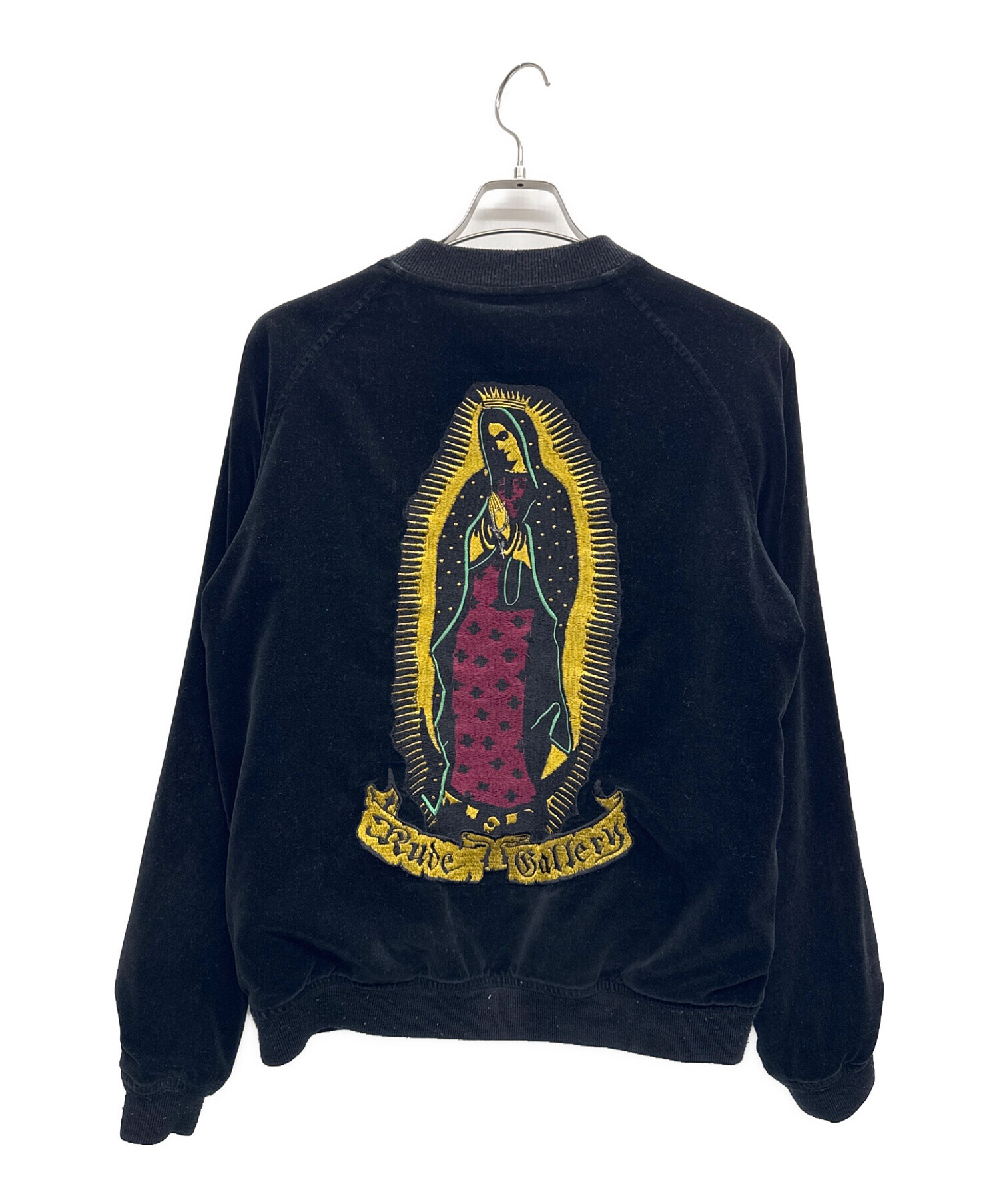 | スタッフコメント | 日本のファッションブランド、RUDE GALLERY(ルードギャラリー)のベロアジャケット。両胸にプレイハンド、背面にマリアが刺繍されたデザイン。リバーシブル仕様なので様々なコーディネートが楽しめるアイテムです。 |