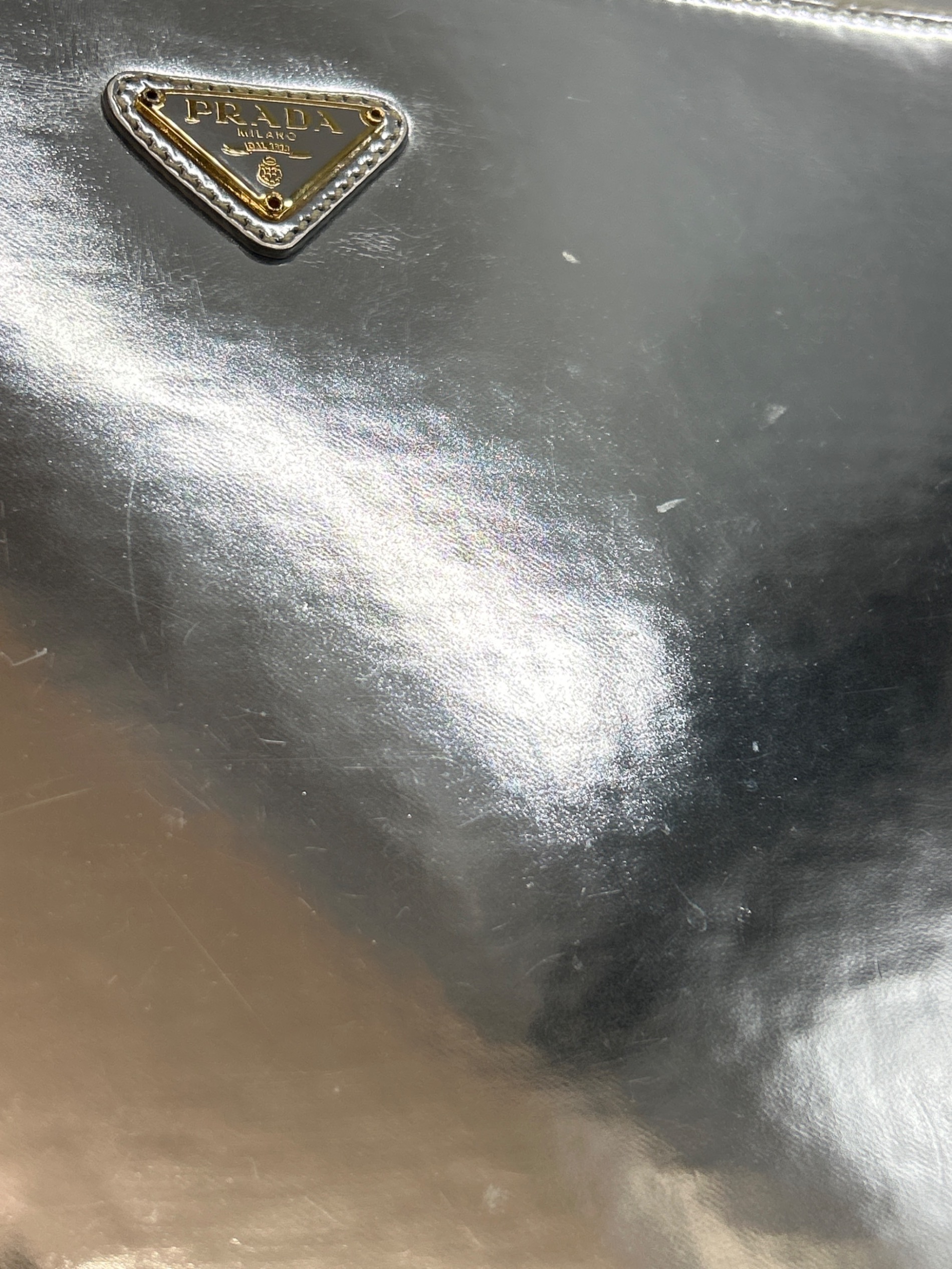 | スタッフコメント | PRADA(プラダ)のクラッチバッグはブランドを象徴するトライアングルロゴがあしらわれ、光沢のあるメタリックなシルバーカラーが洗練された印象のアイテムです。 |