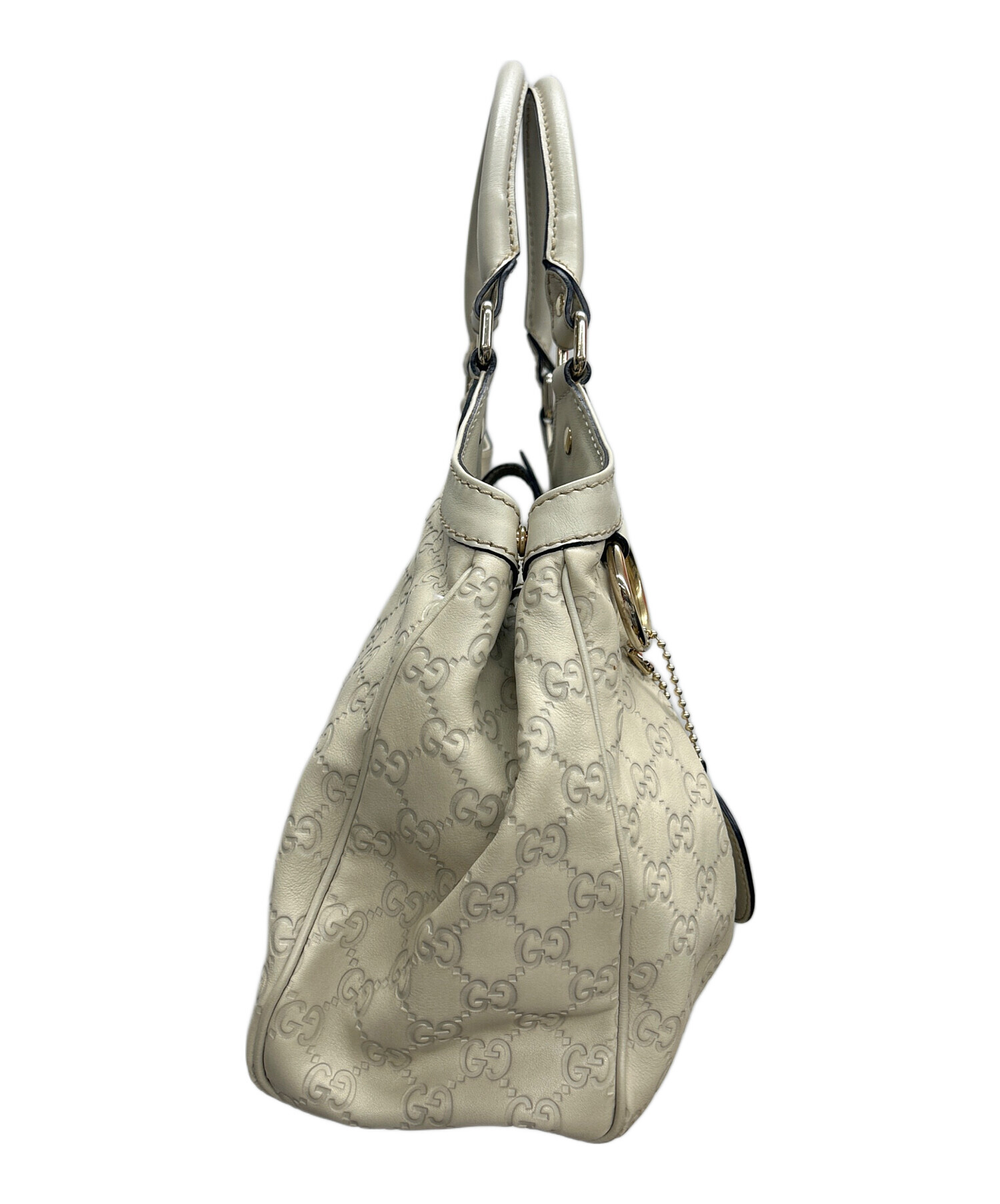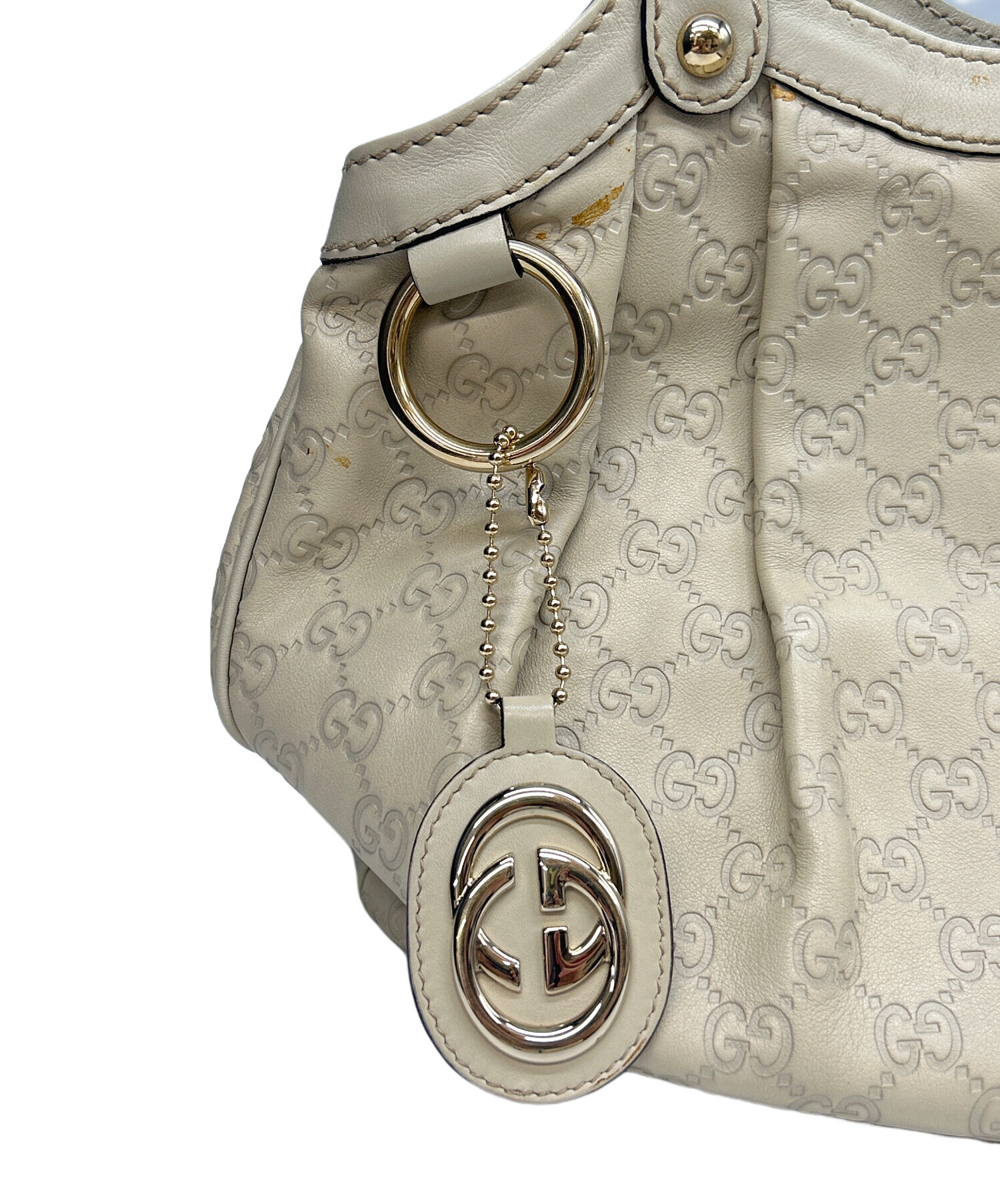 • GUCCI(グッチ)GUCCI (グッチ) トートバッグ スーキー グッチシマ ホワイトの古着・服飾アイテム 上部の各所にヨゴレ、チャームにスレ・小キズ有
