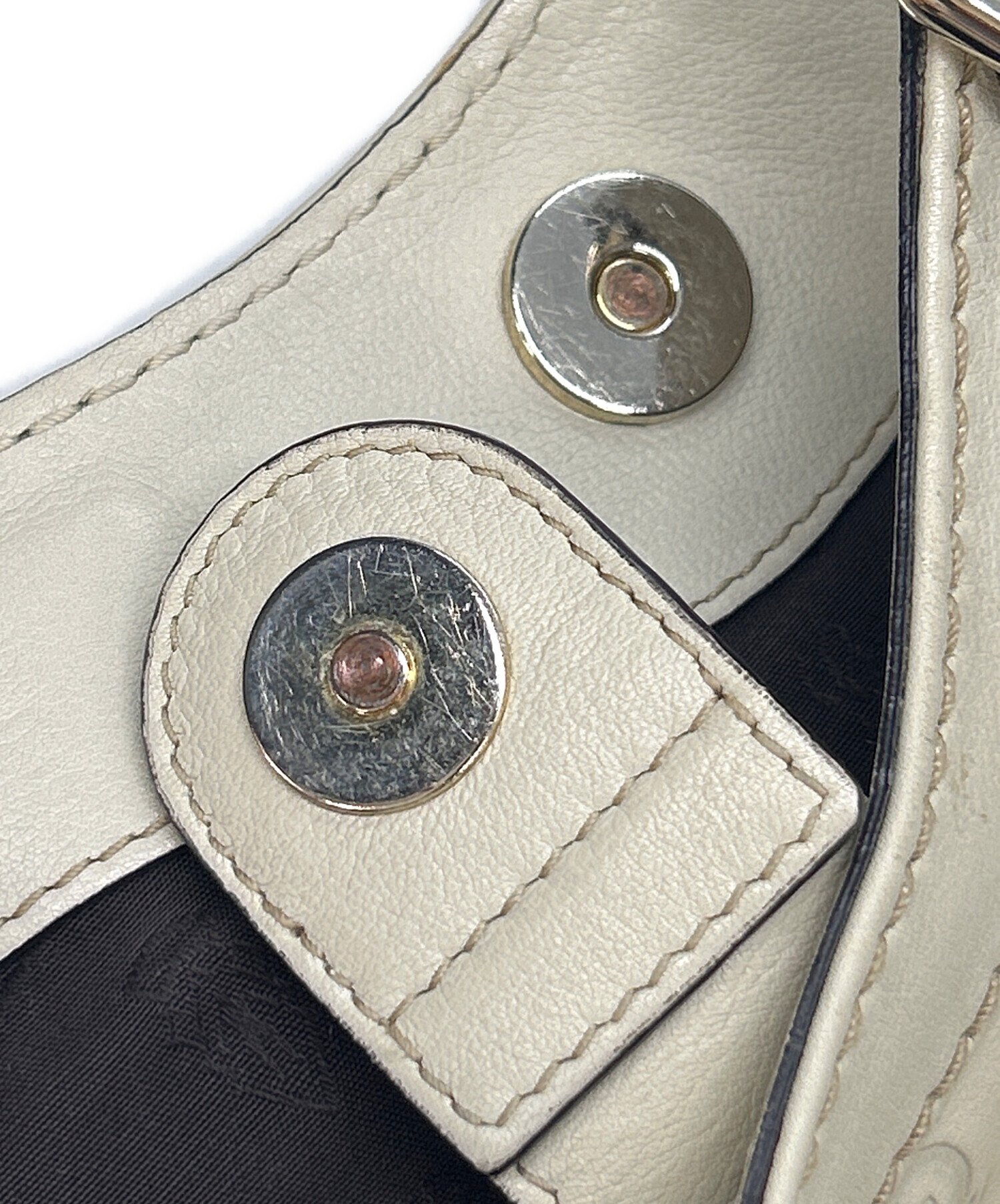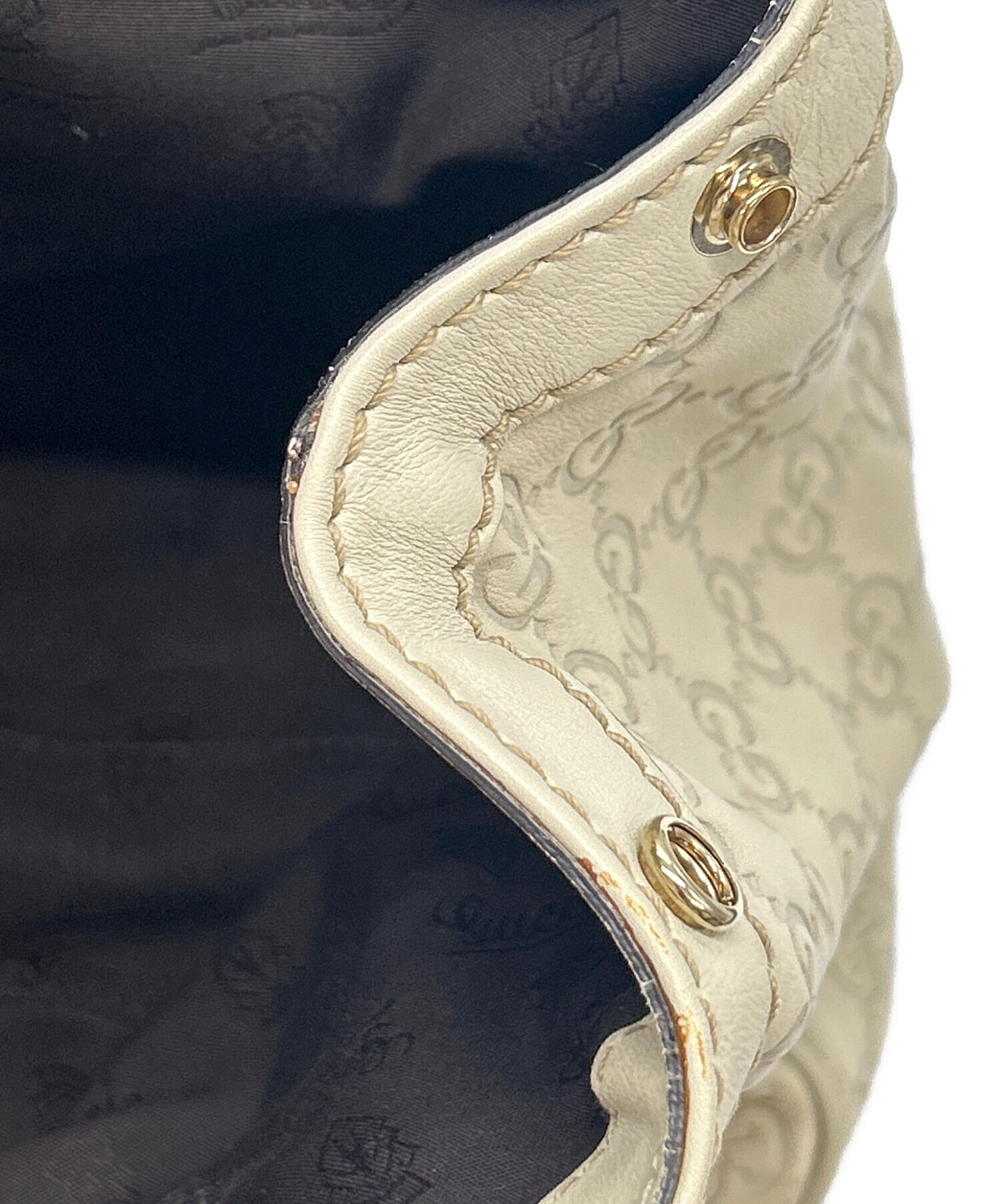 • GUCCI(グッチ)GUCCI (グッチ) トートバッグ スーキー グッチシマ ホワイトの古着・服飾アイテム 留め具に歪み、内部タグに小ヨゴレ有