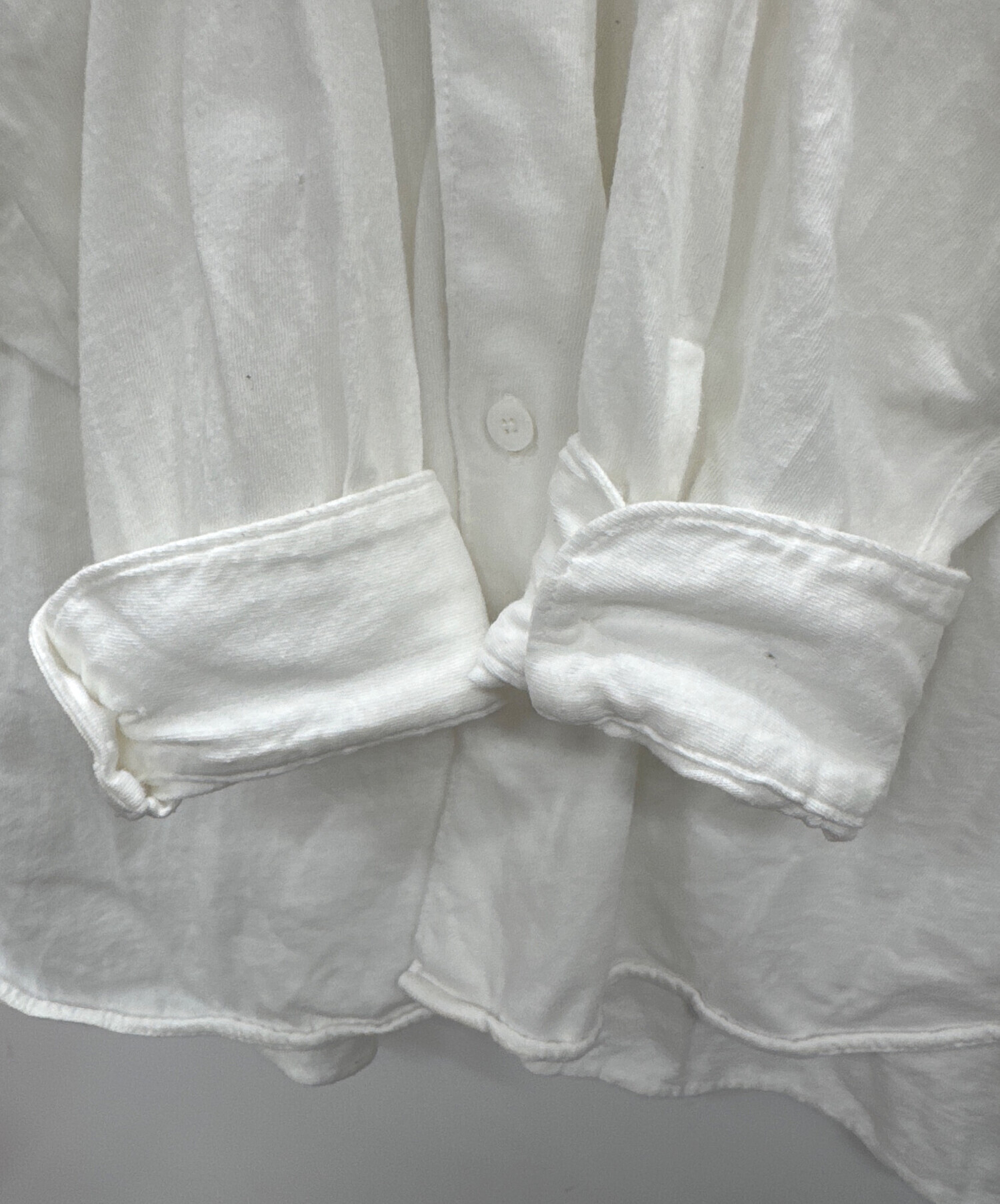 • COMOLI(コモリ)COMOLI (コモリ) コットンジャージ コモリシャツ ホワイト サイズ:2の古着・服飾アイテム 右袖下部に穴有