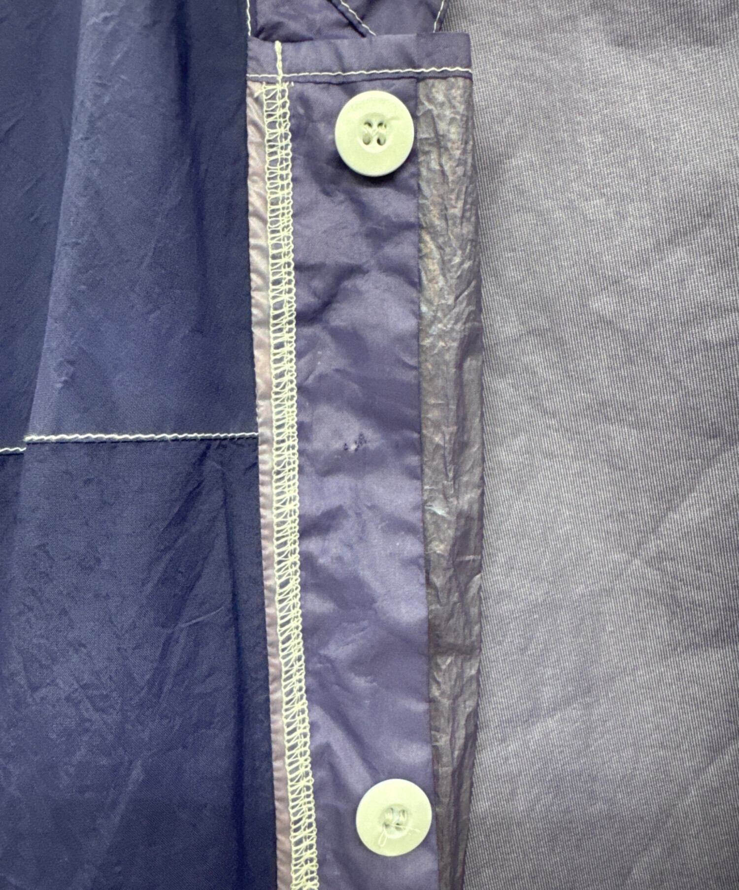 状態 内側上部にスタンプ有、ボタン裏にスレ有、ボタンにホツレ、ボタン付近にキズ、穴有、両袖口にスレ有、背面右脇にシミヨゴレ有(画像参照)