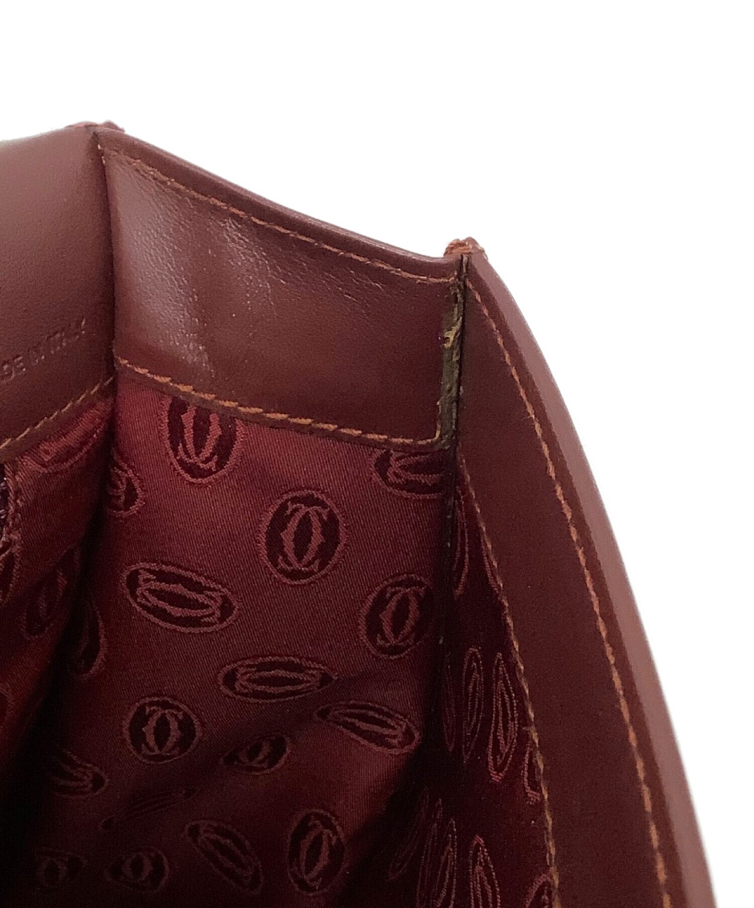 • Cartier(カルティエ)Cartier (カルティエ) ハンドバッグ ボルドーの古着・服飾アイテム 内部 ハガレ有り
