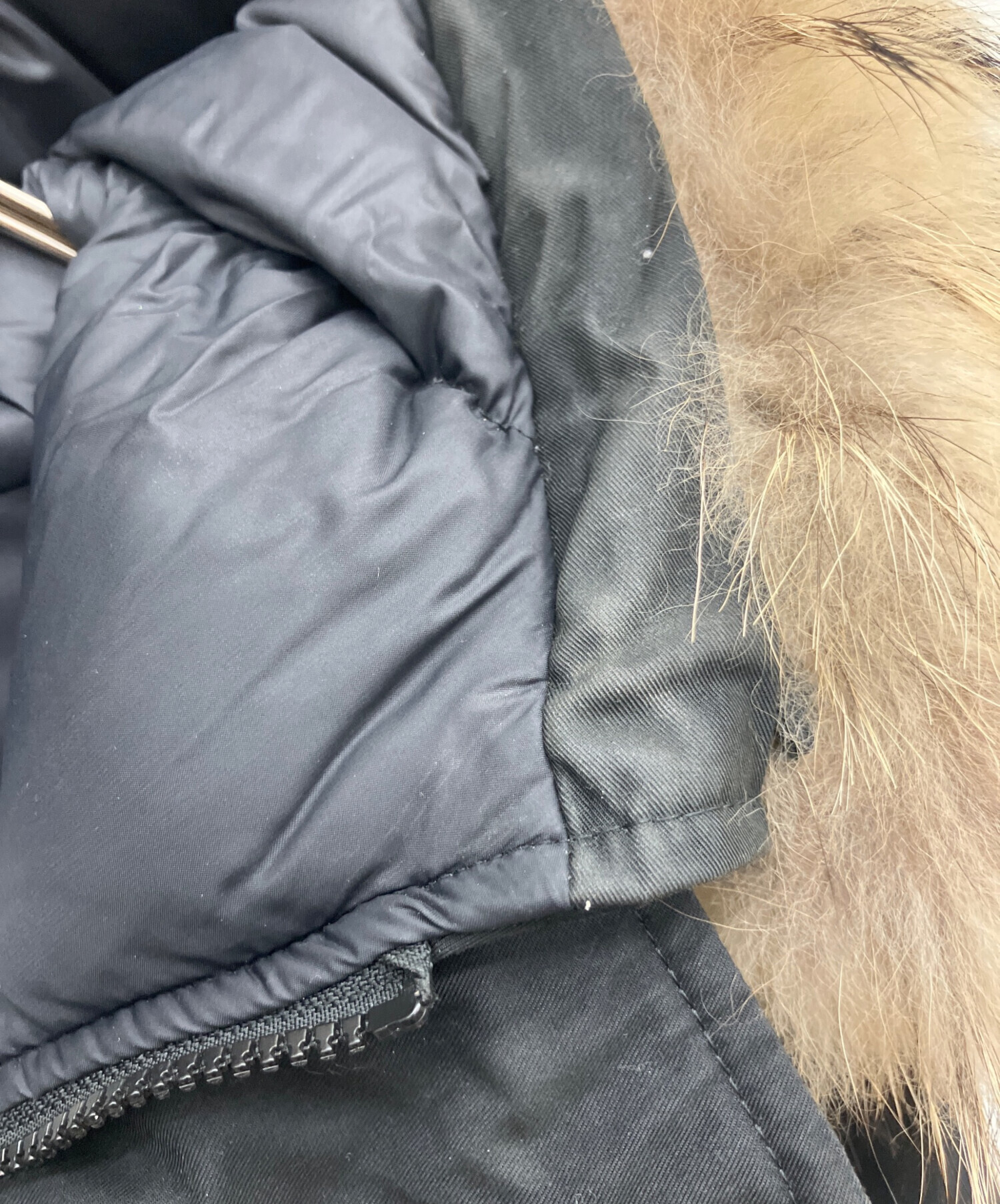 | 素材 | 表地: 綿 74% ナイロン 26% 裏地: ナイロン 100% 詰物: ダウン 90% フェザー 10% 毛皮部分 ラクーン |